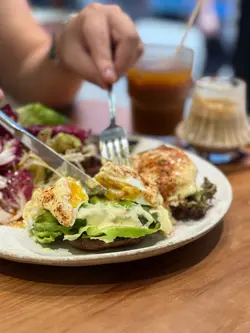 西營盤向來多美食,今次黎左呢間cafe小店試吓三文魚牛油果大牛角包🥑大牛角包🥐超香脆,夾住一片片的牛油果🥑,口感很軟滑,再配上煙三文魚一起吃,層次感非常豐富煙三文魚都幾重魚油香,於是額外再叫多一兜三文魚on side