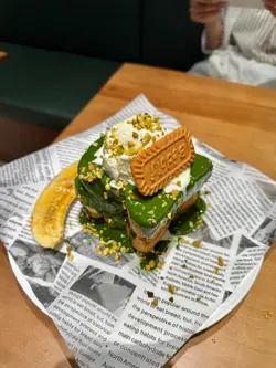 炸魚手指外層好脆口,魚肉煙韌彈牙,蘸上沙律🥗醬一起吃幾過癮焦糖香蕉雪糕吐司配開心果醬🍌🍦一上枱超級靚,淋上大量綠油油的開心果醬香蕉🍌送上焦糖再輕輕燒過吐司🍞輕輕塗上蜜糖🍯再配上雲尼拿雪糕🍦吃起來尤其滿足😌香蕉牛油果沙冰🥑🍧其實係奶昔,喝起來有濃郁的牛油果及香蕉香味在這個炎炎夏日下,尤其解渴!抹茶拿鐵(熱)🍵濃郁的抹茶🍵香,喝下去好creamy順滑,易入口…查看更多