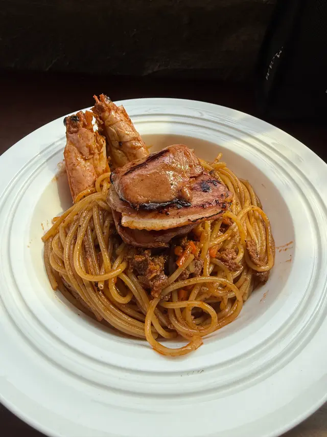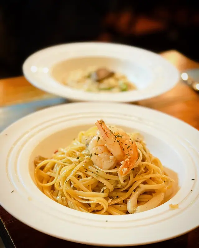 Stumbled upon their hidden gem on a quiet street. We ordered a black truffle double cheese burger with fries. With the first bite, the aroma of the black truffle was very pungent, the patty was cooked to perfection, juicy and full of flavours. Next we ordered a pasta. Signature pasta with Japanese scallop, prawn and crab meat. The pasta was cooked nicely with a good chewiness. The scallop was also cooked to perfection. The pasta was seasoned well!Lastly, we had a scallop risotto with black squid ink. With first spoonful came flavours of the sea, rich and salty. It also had a great texture, with bites of vongole in between.It was a great lunch with great service.…查看更多