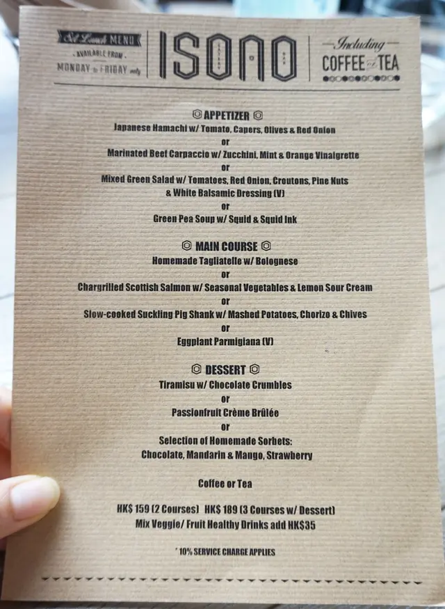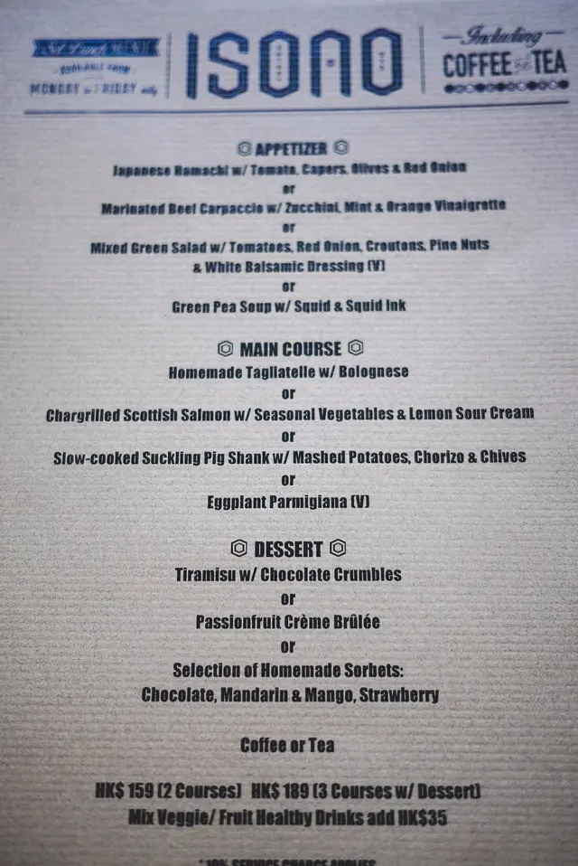 I tried the set lunch today $159 plus 10% for 2 courses plus tea / coffee with my friend. For the starter I chose the slow cooked egg with sauteed mushrooms, which was very tasty and the egg was perfectly done (basically a hot spring egg). However, the main took over 30 mins to arrive (a problem when you only have a lunch hour) and I had ordered the chargrilled salmon with vegetables. When it finally arrived, I was very disappointed - the portion was tiny! There was a maybe 60g bit of salmon in a bowl, together with literally about 6 small sticks of carrot (or other similar veg). I actually complained to the waiter as soon as I saw it, but they said that "set lunch portion is smaller". I understand that, but you would expect the set lunch to at least fill you up! I asked if they had any extra rice or potatoes so I would not be hungry afterwards, but they said the only rice they do is paella. Keep in mind that I am a 60kg female, so heaven knows what a larger man would think of their portion sizes! My friend had ordered the pasta with bolognaise sauce, and her portion was a bit larger than mine, however she also mentioned that it was a big small / stingy. What food there was did taste nice, however having to leave a restaurant still a bit hungry does not make me want to return in a hurry. Other restaurants in central (like Wagyu etc) have set lunches at similar pricing but you are definitely not hungry afterwards. I mentioned my disatisfaction to the waiter and what looked to be the manager (non chinese) as well as the reception staff, but other than "we will tell the chef" there was no apology or any more food forthcoming. Sad really, as it looked to be a nice place.....…查看更多