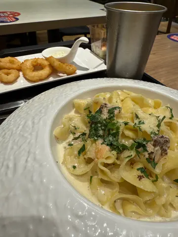-What we ordered🎈1.煙燻三文魚奶油醬捲捲麵2. 羅勒核桃帕瑪森青醬寬扁意粉位於大食代food court 中的手工製意粉店,全日供應手工意粉套餐,只需$88,價錢包前菜、意粉和甜品,意粉可以自選意粉的形狀和醬汁,很個人化!個人認為最出色的是意粉的質感,口感很AI-Dente,這個價錢真是物超所值。前菜意式小牛肉配吞拿魚 酸豆蛋黃醬、酥炸魷魚圈和甜品tiramisu、意式奶凍則是一般發揮,甜品凍一點會更好。整體來說,這個價錢能吃到這質素的手工意粉,真是難得!#footage_hk #jordanhongkong #hkrestuarant #foodcourt#hongkong #手工意粉#大食代#大食代美食廣場…查看更多