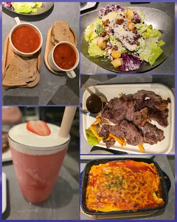 再來午餐日常,貪佢坐得舒服,野食算OK夏威夷手工pizza 富有熱帶風情嘅經典之選,手工餅底嘅香脆,一種純手工製作嘅質感,帶住微微碳香,菠蘿嘅果香喺口中滲開,有啲清甜又帶一點微酸,加上火腿嘅鹹香形成對比,面層再舖滿濃厚芝士,OK!香草豬扒芝士滑蛋蓋飯 鮮嫩嘅豬扒鋪滿喺飯面,再配合滑蛋嘅金黃光澤。豬扒嫩滑多汁,外層略帶焦香,內裡又保持住肉質嘅鮮嫩。最好食係滑蛋,細膩柔滑,蛋味香濃,加上酸酸甜甜嘅番茄醬汁,開胃又好味。白飯吸收咗所有芝士汁同蛋汁。