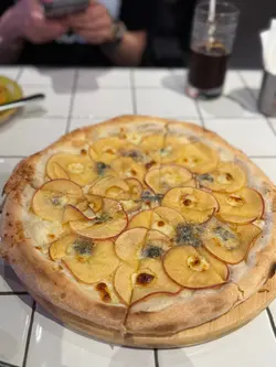 我哋預早預約定,星期日晏晝一點鐘去到 。見舖頭門口有t-shirt賣,裏面有座位, 30%入座率,生意麻麻地。 我哋一行8人坐最入單邊梳化位,店舖內嘅裝修走復古型格鮮橙色 嘅格調,我哋嗌咗最 受歡迎 嘅蘋果pizza🍎同埋四重芝士pizza🧀🍕,味道唔錯, 批底薄脆💯,芝士味濃鬱😍😋 另外千層闊面 熱辣辣,啱啱喺焗爐焗出嚟。食物好味新鮮 ,另外有嗌牛油果蛋沙律,沙律菜新鮮清新, 仲有其他食物唔記得影相 。 整體嚟講 食物品質中上,如果有機會會再嚟🤩。…查看更多