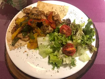 吃完後更是開胃omakase的pizza🍕天啊超邪惡的芝士把薄餅片拿起連著一絲絲的起司入口啖啖濃郁綿綿地溶在口裡二人餐和omakase各有一飯我們分別有兩雞一牛地方食物都是偏熟的習慣5成的朋友可能會不習慣omakase裡的羊架配薄餅每道菜都搭著青菜健康有益同時幫助清洗味蕾這隻羊架羊腸小道味很重愛羊穌味的人必選就連底下的兩塊薄餅也吸滿了重重的羊味難得的聚餐我們隨便點了一支白酒清清的很易入口不知不覺就喝完了為友情乾杯