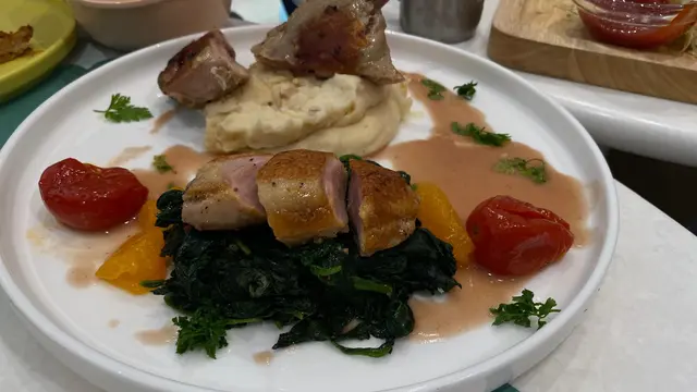 推薦呢間超新超大既北歐風親子餐廳! 空間寬敞舒適,坐得舒服,食物質素仲超高👍連小朋友餐都好精緻!🍝🍕 首推招牌菜豬鞍配蘋果白酒汁,厚切豬鞍煎得外層微脆,內裡肉質卻保持驚人的軟嫩多汁,毫不乾柴。靈魂所在既醬汁以蘋果清甜結合白酒既醇香,滋味層次豐富!另一亮點係啖啖肉Pizza,薄脆餅底上鋪滿各式肉類和濃郁芝士,絕對可滿足「食肉獸」的胃口。餐廳對細節的用心更體現係兒童餐上,一個餐盤裡竟包含薯條、Pancake、肉醬意粉、色彩繽紛既啫喱、新鮮生果同雞蛋,精緻豐富,小朋友食得開心又營養均衡。飲品方面亦絕唔馬虎,香濃滑順的好立克帶來暖心懷舊風味,而酸甜醒胃的熱情果特飲則果香突出,非常開胃。查看更多