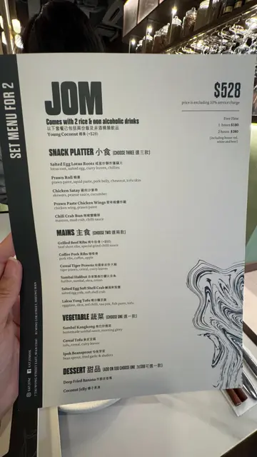 早前終於去咗上環Jom試新加坡菜,成個體驗好有驚喜!先叫咗鹹蛋炸蓮藕片,薄切又酥脆,鹹香開胃,連朋友都停唔到口;之後必食嘅炒貴刁河粉條條分明,炒得超有鑊氣,蝦好爽口,食落有舊時食街邊檔嗰種地道味。主菜點咗麥皮大蝦,同喺新加坡食一樣咁好食😋😋最驚喜係咖啡骨,肉質嫩滑,醬好有層次感,帶少少焦糖味但唔會太甜。整體來講,感覺Jom食物有心思,環境都好舒服,會好想再約埋朋友嚟share多啲招牌菜。整體我會比90分💙
