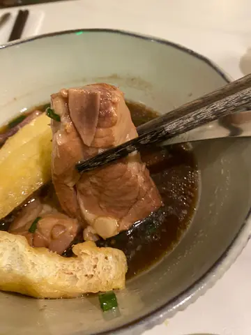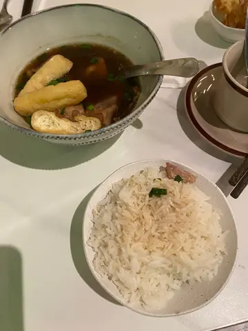 食過兩次了,覺得呢間星加坡菜館裝潢好現代,而且菜單簡約,好啱返工一族的午餐之選。這一次叫左肉骨茶午餐,覺得個湯好濃,雖然聽講星加坡的風味以胡椒為主,但呢個湯感覺都有啲藥材味,而且個豬肉連骨都好嫩,份量亦好多,起碼有4塊帶骨的肉,加幾塊豆卜(油豆腐),好啱配飯由於肉骨茶無菜,我同朋友再叫左清炒韭菜,味道比較鹹,份量頗多。這個餐約一佰元,連基本飲品薏米水及服務費,在中上環有少少高,但環境裝潢新穎,好啱傾計及想坐耐一啲嘅上班族。