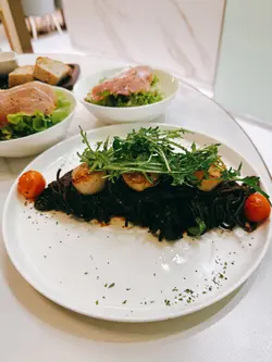 今日去左打卡熱點到食飯,就係荔枝角新地標內嘅一間精緻日光 Cafe。Cafe以蘋果綠色作主調,,樓底更有 5 米高,採光好,超適合打卡。食物高質性價比高,主打無添加味精仲用左意大利進口嘅手工 Pasta,餐廳提供多種選擇,有自選 All Day Breakfast 、Gelato,特飲、意大利紅酒,應有盡有。.我哋就叫左個二人晚市套餐 $388沙律2款+餐湯2款+自選2主菜+2甜品 超抵食!.🥗沙律-義大利巴馬火腿水耕菜沙律鹹香嘅Parma Ham配新鮮沙律菜,清爽又開胃.🥣餐湯-🥦西蘭花忌廉湯口感滑順,好creamy,味道濃郁.🍽️主菜-🍝北海道帶子刺身,配櫻桃蕃茄醬墨魚汁意大利粉-🍕瑪格麗特披薩 27cm 帶子鮮甜,意粉軟硬度適中好掛汁,配上濃郁墨魚汁同番茄醬汁,好開胃瑪格麗特披薩,薄底香脆配埋拉絲水牛芝士,簡單又好食.🍰甜品-🍨香蕉Gelato-Crème BrûléeGelato好濃郁香蕉味,好好食!焦糖燉蛋面頭既糖燒得脆口配搭濃濃蛋味嘅燉蛋,外脆內嫩雙重滋味~…查看更多