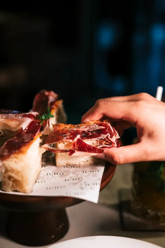 好友為我慶祝生日,悉心安排了位於上環,揉合地中海風情的時尚意大利餐廳「JUNO」享用晚餐外牆以奪目綠配搭高貴金線條,大氣高貴又富時尚感,室內則用上橄欖綠及粉色系,加上大理石料理桌、絨面沙發座椅,環境氛圍絕無可挑剔之處;主廚來自巴塞隆拿,餐廳更榮獲 2025 年米芝蓮「必比登」推介-🔹辣香腸與斯卡莫札芝士 $120炭烤斯卡莫札軟心芝士及意大利辣香腸抹醬,配上四件脆法包好客的男店員私心推介;果然不令人失望,芝士被燒至焦面,外脆內軟糯,做到強烈拉絲感;芝士有著濃郁的鹹香與奶香,配搭番茄風味的辣肉腸抹醬,口感豐富也能減低芝士的膩感-🔹意大利豬肉腸寬管粉 $210寬管意粉、意大利豬肉腸、瑪薩拉酒、豬面頰肉、蕃茄汁及南法紅辣椒粉主廚特色推介;首嚐這個寬度的意粉,感覺有趣,口感絕對做到 Al Dente,非常喜歡及欣賞;豬面頰肉充滿脂香感,軟嫩有彈性,配搭集鹹酸辣於一身的醬汁,層次分明又滋味-🔹意式燴小牛膝 $280意大利小牛膝、藏紅花馬鈴薯泥、牛肉汁,及炭烤意大利青瓜主廚特色推介;擺盤用心精緻,牛膝面鋪上嫩甜多汁的意大利青瓜,再以香滑細緻帶溫雅藏紅花香的馬鈴薯泥圍邊;小牛膝肉嫩軟腍帶著濃郁的牛骨香與膠質,味道鮮美,令人滿意-🔹提拉米蘇 $100咖啡浸手指餅、馬斯卡彭芝士、Valrhona 可可粉主廚特色推介;朋友預約時告知為朋友慶生,餐廳為客人提供寫字及即影即有服務,很加分!正宗意大利做法,口感滑順濕潤;鬆軟的手指餅配搭濃香馬斯卡芝士,入口即化,帶咖啡醇厚、可可粉的微苦、芝士奶香及馥郁酒香,層次豐富且分明-🔹PINK LOVE $80Cranberry Juice, Lemon Juice, Fresh Raspberry貼心在飲管上端套上包裝,確保衛生,超貼心!酸甜平衡又新鮮的紅莓、覆盆子及檸檬配搭得宜,甜度不高-🔹PEACH ICE TEA $80Peach Tea, Lemon Juice, Fresh Mint陣陣桃香與檸檬汁及薄荷的結合,清雅天然…Read More
