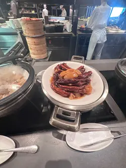 香港高質自助餐其實幾隻手指數得完!早前就去到一間我很喜歡的重溫美味,食物質素依舊迷人吃得我滿心歡喜。說的正是金鐘JW Marriott Hotel Hong Kong於10月重開人氣自助餐廳JW Café。甫踏進餐廳便是甜品區!打頭陣有Tiramisu、黑加侖栗子蛋糕、泰式奶茶奶凍、Medeleine、鴛鴦蛋卷、木糠布甸、雜錦果仁撻及伯爵巴斯克蛋糕。繼續還有栗子費南雪、芝士蛋糕、朱古力果仁蛋糕、紅桑子朱古力慕絲蛋糕、開心果車厘子蛋糕及香水檸檬戚風蛋糕。最後還有蘋果奶酥、麵包布甸、葡式蛋撻、朱古力心太軟及芝麻糊,選擇真的不少而且還有不少特色的甜品,相信甜品迷應該會好滿足。對面的凍櫃放滿了新鮮水果!當中包括有哈密瓜、火龍果、西瓜、甜橙及菠蘿等。至於雪糕方面供應幾款不同口味的Häagen-Dazs杯裝雪糕,不過最驚喜的是竟然有日本Ohayo焦糖布丁雪糕,可以無限任吃太激動了吧。繼續往前走是前菜及冰鎮海鮮區!這夜我們可以品嚐到麵包蟹、雪場蟹腳、波士頓龍蝦、海蝦及龍蝦鉗,幾款海鮮都非常合我口味真開心。花雕醉蝦、香辣木耳及醬漬溏心蛋賣相很是吸引,另外還有數款芝士可供選擇。另一邊廂擺放了各式凍肉、沙樂美腸、紅酒辣肉腸,還有三款不同口味的三文魚。自助沙律吧也超多選擇!有色彩繽紛的新鮮沙律菜大量清爽配料及醬汁,還有我喜歡的自助凱撒沙律。現成沙律陣容都好龐大!當中包括有日式三文魚沙律、藜麥沙律、芒果大蝦沙律、泰式苦瓜蜆肉沙律、炸雞沙律、薯仔沙律及意大利卡布里沙律。日本美食專區當然有新鮮刺身供應!這夜可以品嚐到三文魚、油甘魚、象拔蚌、吞拿魚、北寄貝、赤貝、八爪魚及甜蝦。另外還有非常特色好像開盲盒般的Omakase!這夜就可以品嚐到杜池魚刺身,另外還有肥美的油甘魚鰹魚壽司。來到我最期待的中式熱葷區!率先有豉椒炒大蜆、咕嚕肉還有我期待的野米濃湯燴花膠,接下來還有海參、古法燜南非鮑魚、大蝦、龍躉骨腩及超好味的青菜。異國美食就有牛肉咖喱、雞油飯、印度煎餅、雜菜咖喱及雞肉咖喱可以選擇。當然少不了港式燒味!包括有片皮鴨、紅燒乳鴿、蜜汁叉燒及白切雞。西式熱葷有牛米必吃的厚切肉眼及燒羊架!聽聞兩款質素都非常高牛、羊迷真的萬物錯過喔。靚肉還有不少配襯Side Dishes,可以弄一份正宗扒餐。接下來還有牛油扒大蝦、白酒煮青口、烤鯖魚、龍蝦細麵及焗三文魚,湯羹有三款包括蟲草花燉湯、忌廉番茄湯及雞絲素翅羹。即叫即整的位置有好特色的上海鹽肉菜飯,後面還有幾款炸得香脆金黃的天婦羅。至於充滿煙火氣的即淥粉麵專區有大量不同款式的生料,大家可以選擇自己喜歡的粉麵及餸菜,配襯豬骨湯或清雞湯拼出碗獨一無二的粉麵。最後還有矜貴又滋補的原盅佛跳牆!燉盅、匙羹及骨碟也用上紫砂,看得出這口湯很有誠意應該會很滋味。喜歡嘆兩杯美酒的我非常建議加$220享用Free Flow Package!可以無限暢飲,精選紅、白餐酒、日本清酒及氣泡茶。第一碟當然要吃得健康選上清爽的前菜及沙律!坦白講全部都好好味真過份,但最令我讚嘆的是花雕醉蝦,醉蝦汁香甜美味配襯爽彈鮮味的大蝦我比滿分。刺身亦相當有水準當中我就最喜歡鮮甜爽口的赤貝,另外那件油甘魚鰹魚壽司帶了雙重鮮味好吸引耶。Omakase的杜池魚刺身即是深海馬頭鯛!吃下去肉質紮實魚油豐盛鮮味回甘,配搭上鹹香的三文魚籽味道更有層次冰鎮海鮮亦是沒法輸的美食!龍蝦肉質爽彈鮮甜龍蝦鉗尤其嫩口,麵包蟹的羔甘香細膩好唰嘴,海蝦彈性十足味道鮮美,雪場蟹腳充滿海水鮮氣太迷人喇。吃過冷盤之後是時候喝口熱湯暖胃!沒太多位置的情況下當然要選擇矜貴的佛跳牆。以紫砂器具來盛載保持香氣之餘更能保溫好細心的安排,內裏有鮑魚、花膠、花菇及精肉等豐富材料,味道鮮甜不油膩感覺非常養生。這一碟朋友笑說像去飲宴般的菜式!全部也是矜貴的海味當中南非鮑魚炆得非常入味,加上煙靭的口感越吃越香怪好吃,另外那條菜心也不是省油燈!很久沒有吃過這麼清爽甜美的菜心非常讚。當然最吸引的肯定是這個野米濃湯燴花膠!花膠大隻得來還非常厚帶出勁享受的口感,野米濃湯的味道比較新穎是想像不到的新口味。其實我還吃了片皮鴨及勁好味的叉燒,就是因為太好吃我竟然忘記影相!最後朋友極力推薦下取了兩粒超好吃的餃子,餃子絕對是皮薄餡靚的佼佼者還有我喜歡的韭菜口味,就算吃得多滿足也要留肚嘆兩粒啊。這夜真的非常開心有我喜歡喝的氣泡茶!升級任飲就以無限暢飲實在太幸福了,品嚐了兩款口味清爽不甜非常好喝。最後甜品只能意思意思地試試!加點幫助消化的水果真的滿足到頂點了。自助晚餐成人收費$818/位起,於酒店網上商店預訂星期一至四可享8折優惠,星期五至日、公眾假期及公眾假期前夕可享85折優惠。…查看更多