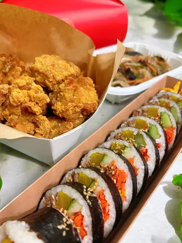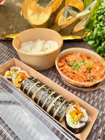 呢間韓式外賣店嘅包裝幾靚,用金色外賣袋裝住!首先揀咗原隻黑蒜炸雞(無骨),呢個炸雞真係不得了!黑蒜嘅味道好特別,唔會太濃,同炸雞嘅香脆口感好夾!雞肉嫩滑 juicy,完全唔會乾!個醬汁甜甜地,鹹鹹地,好惹味!跟住係牛肉紫菜飯卷同吞拿魚紫菜飯卷,呢兩個飯卷都好味!飯卷嘅米飯煮得啱啱好,唔會太硬,而且飯卷嘅餡料都好多,牛肉同吞拿魚都好新鮮,味道唔錯!紫菜嘅香味濃郁,而且飯卷嘅size都幾大,一份已經好飽肚!