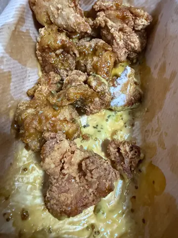 睇評語對炸雞好有期望,結果一食好乾,啲肉係乾到鞋,一絲絲,肉眼睇都覺乾。啲皮炸到硬,食落成舊野又乾又硬。買黃金蜜糖炸雞,遮係蜂蜜芥末醬,啲醬太少,一舊炸雞沾到既醬係一忽仔,有啲甚至無醬,😂底下果張紙係沾到醬最多。飯卷正常,算好食,唔會太多生青瓜整到飯卷好硬,柔軟中帶爽脆。炸雞…..😂麥記炸得出色啲。