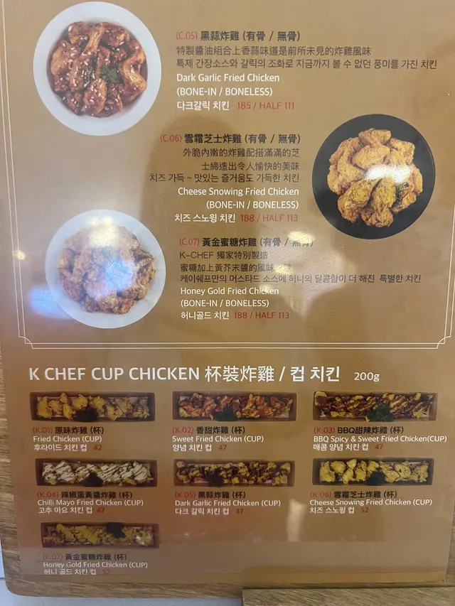 唔該嗰個高瘦白女職員唔想做就resign啦!跟本唔願意花任何一秒鐘時間同客人溝通,叫你俾餐具就用力扔入去外賣袋,仲要俾少咗一套搞到我嗱手唔成世,而家我有咩得罪你?講返食物,預製食物嚟講味道可以:Kimchi煎餅酸味太勁,炸雞味道幾好,但因為預製所以唔脆海苔卷奉勸各位唔好叫啦,入面真係得一堆粉絲無其他餡料拌飯個碗好大個,但飯量其實只有碗嘅不足一半至於價格我覺得中規中矩,正常價錢夠飽肚。如果想食炸雞,都係幫襯返即製餐廳Read More