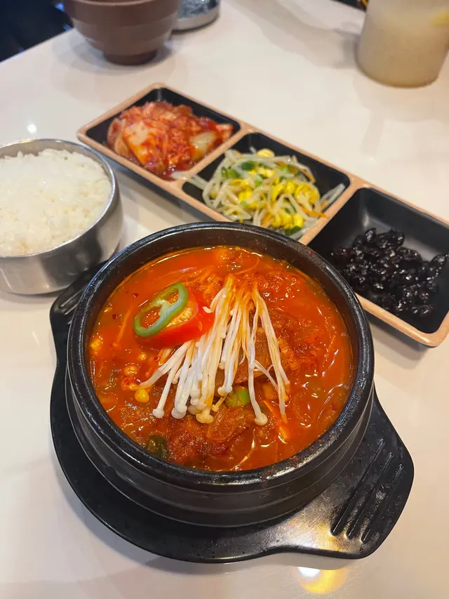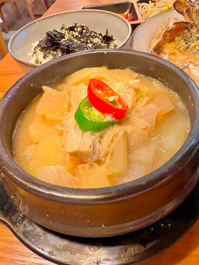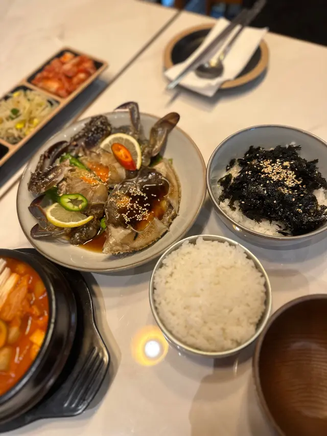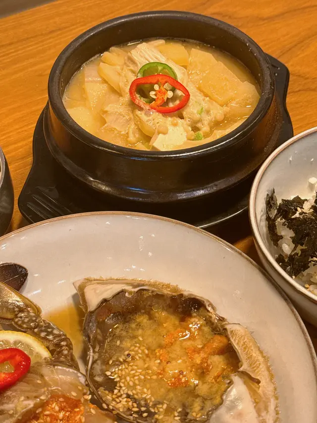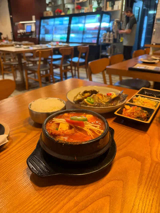 朋友喺黃埔返工,打算接佢收工一齊食晚飯,本身打算食韓國嘢,誤打誤撞嚟咗呢間餐廳🤣呢區好似都幾安靜,去到唔使排隊,仲俾咗個4人位我哋坐👍🏻因為價錢偏貴,我哋叫咗兩個主菜1️⃣$288韓式芝士燜雞(無骨)⭐️⭐️⭐️⭐️芝士味好濃,份量都大,而且佢個汁係甜甜地嘅,裏面有瓜、雞肉、類似寬粉嘅嘢、食落都幾好味2️⃣$108豬肉泡菜湯飯⭐️⭐️⭐️有少少辣,不過好惹味,配飯都幾好食最後叫咗兩杯米酒,芒果米酒同埋檸檬米酒,個人比較推介檸檬,清新口味👍🏻整體⭐️⭐️⭐️📍K-Palace(景福宮)…查看更多