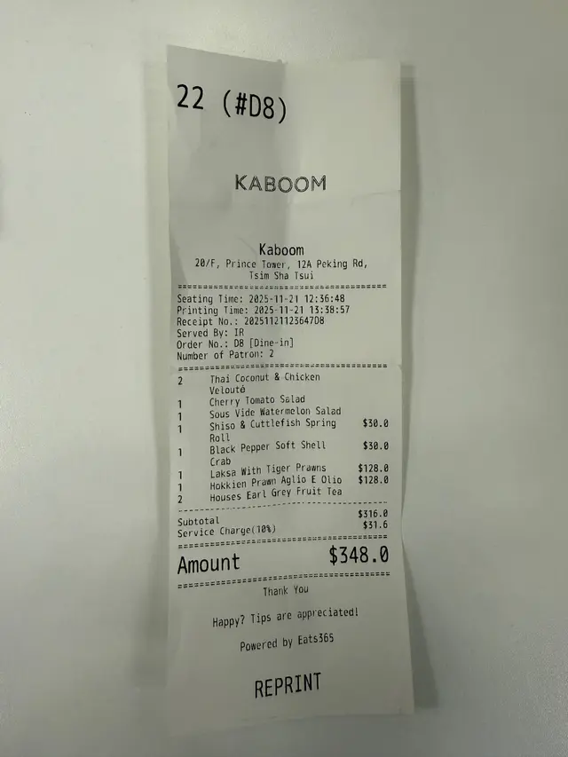 KABOOM (尖沙咀) 網上訂座即賺Rice Dollars 網址: https://s.openrice.com/QrbS0reqB00 地址: 香港尖沙咀北京道12A號太子集團中心20樓 電話: +852 37088114