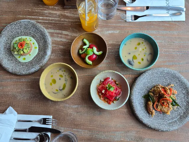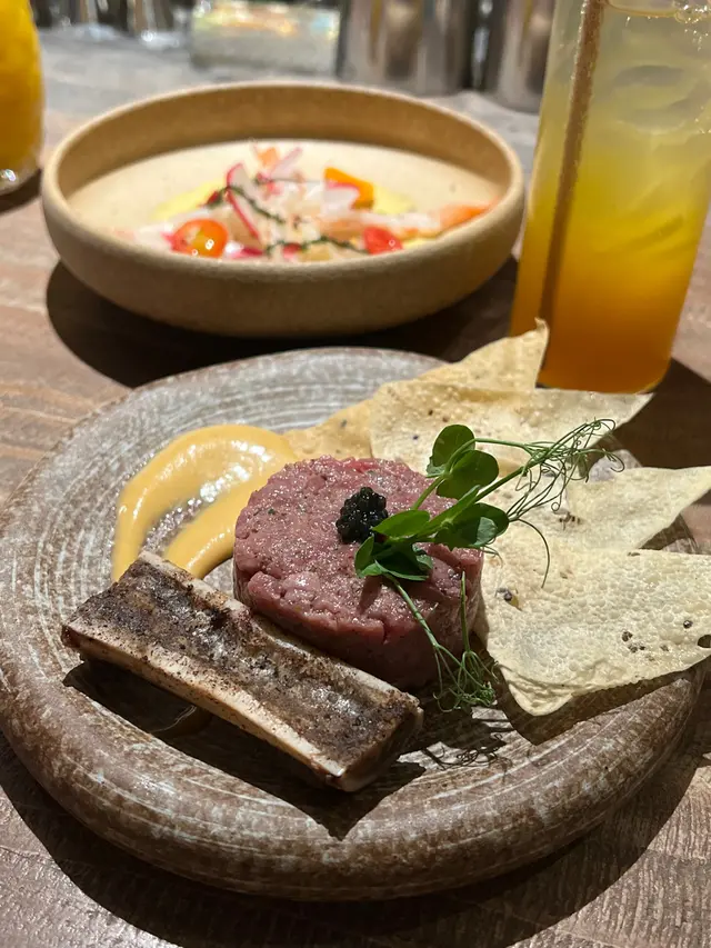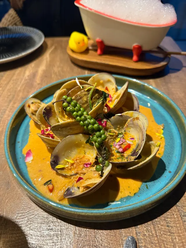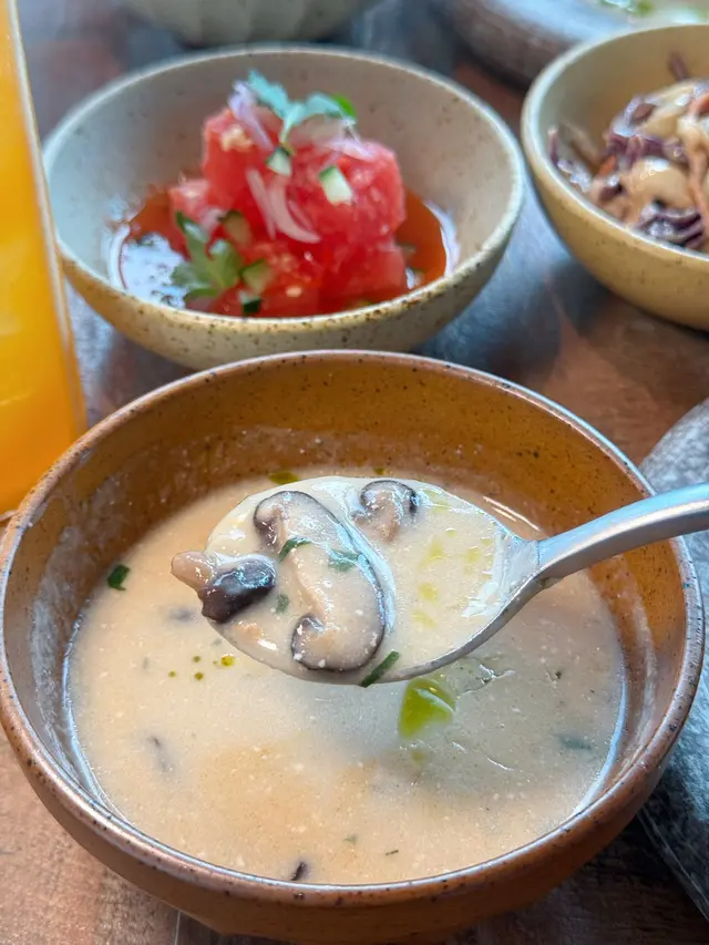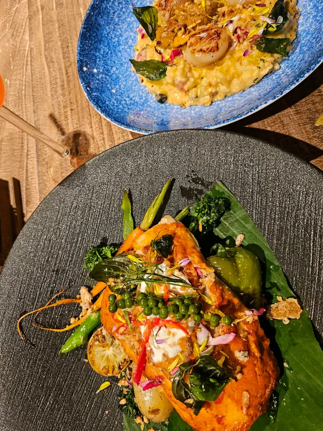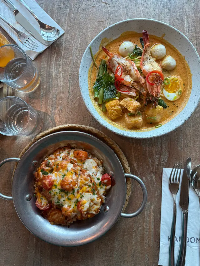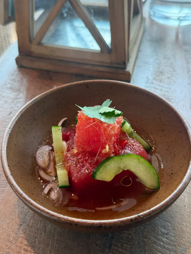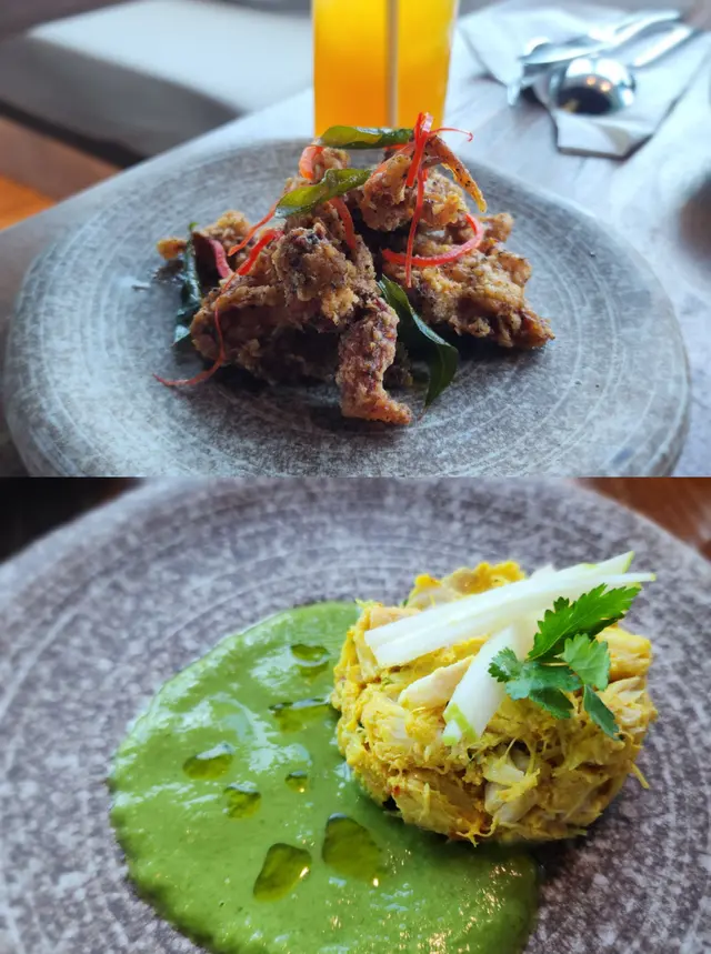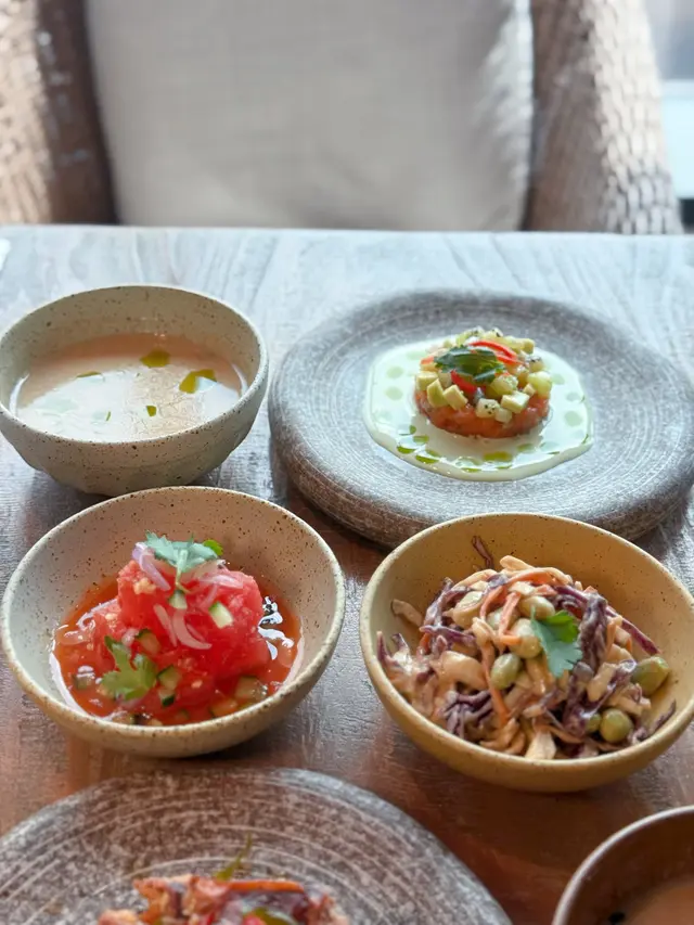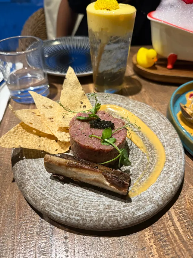 今日又同大家姐去位於尖沙咀北京道,環境優雅,遠望維景Veiw,而且充滿泰國風情兼有濃濃渡假feel 嘅泰國fusion餐廳「Kaboom」食親民價$128 起既4-Course Set Lunch😋Salad 🧿Thai Crunch Salad帶點花生味的醬汁涼拌紫椰菜絲、蘿蔔絲及枝豆,味道清新爽口開胃。🧿Sous-vide Watermelon Salad 慢煮西瓜好特別,又甜又juicy,配埋青瓜食,爽口又清新。Soup🧿Thai Coconut & Chicken Velcute入口陣陣椰奶香,湯底濃郁而不膩,湯料嘅雞肉同菇菌都好好食,口感十足。Appetizers🧿Black pepper Soft Shell Crab(add on $30)軟殼蟹炸得夠乾身,香脆可口,有埋黑椒更加美味。🧿Sniso & Cuttlefish Spring Roll (add on $30)紫蘇葉包住墨魚肉炸,好似春卷咁,見到已經流晒口水,墨魚肉彈牙有嚼口,入口更帶點紫蘇葉香,蘸上酸甜汁,更顯泰式風味。Main 🧿Laksa With Tiger Prawns虎蝦好大隻,烤過嘅蝦特別香,魚蛋彈牙,豆卜同麵吸晒叻沙湯嘅精華,仲有半隻雞蛋,真係好足料。🧿Baked Rice with Pork Rack用車厘茄、芝士嚟做醬汁,味道濃郁,酸甜開胃,厚切吉列豬鞍架,外脆内嫩,肉質非常軟腍,配蝦醬炒飯,真係無得輸😋Drinks🧿House Earl grey Fruit Tea好有陽光氣息嘅飲品,除咗伯爵茶香之外,亦有熱帶水果嘅味道,好飲。…查看更多