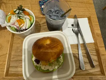 黎到山景既工廠區,估唔到有間咁chill既日系cafe! 環境雖細,但樓底較高同裝修設計上既巧思提升左店面空間感,加上日式木系裝潢感覺溫暖,平日午餐去幾乎滿座但唔算迫,都過左一個好悠閒既工作日午餐。畢竟係cafe,菜單選項唔多,以包同甜點為主,品項少先可以做得更完美,menu最吸引我既係蟹肉bagel($108),唔算平但質素對得住價錢,bagel煙韌唔會過硬,外層烘過微脆,口感很好👍🏻內餡都充滿驚喜,滿滿既蟹肉增添鮮味,牛油果都好新鮮creamy ,仲排成花咁,賣相加分!bagel仲連住一杯沙律,沙律菜好新鮮,個醬都幾好食幾特別,食落帶啲椰子味!飲品叫左凍黑芝麻latte, 相對蟹肉bagel黎講冇咁有驚喜,味道ok都有芝麻香味,唔太甜。第一啖飲略淡,可能因為啲芝麻醬都沉左喺底,飲之前攪勻較好。整體黎講,雖然以當區消費黎講略貴,但見到食物出品同埋悉心布置既環境,充分感受到店主既用心,值得一訪。…查看更多