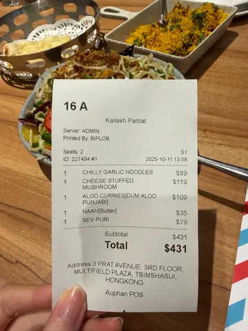 🌞 假日終於可以hea下!行完海港城之後,決定去尖沙咀試下最近成日見人推介嘅 *Kailash Parbat*。呢間由印度人主理嘅素食餐廳喺印度都好出名,主打地道印度素食,話明齋都可以好豐富、多層次~ 一入去就聞到濃郁嘅香料味,裝修亦好有印度風情:💡金銅色吊燈、彩色布藝牆飾同木製傢俬,配上柔和嘅燈光,感覺好溫暖又帶點異國味。午市時間客人都幾多,不過氣氛仍然好輕鬆,啱晒假日慢慢chill住食。🍽 今次午餐我試咗以下幾款人氣菜式:🧆 BAMBAIYA DAHI PURI ($89) - 一上枱就超吸睛~ 細細粒脆波波每個都包住薯仔泥,加埋酸甜醬汁同濃郁乳酪,最後灑滿香料同炸粉絲。食落又酸又甜又香,層次豐富,好開胃!🌰 BORIVALI KI DABELI ($79) - 呢個係印度街頭小漢堡,外層麵包香軟,入面夾住濃滑薯泥、花生碎、石榴粒同羅望子汁。口感好有驚喜,花生嘅脆、石榴嘅甜,加上香草清新味,整體唔覺得heavy!🍛 CHOLE BHATURA ($115) - 去印度餐廳必食!鷹嘴豆咖喱香料味濃但唔辣,汁稠稠地好巴飯。配埋炸得香脆外軟內空嘅Bhatura(麵包),撕開嚟蘸汁食超正~ 我揀咗芝士版本,味道更香更滑,飽足感十足! 🍚 KP SPECIAL BIRYANI ($109) - 香料飯一上枱就已經聞到香味,飯粒分明、色澤金黃。入面有豆腐、雜菜、少少洋蔥絲,香料配得啱啱好,唔嗆、唔油膩。每啖都充滿層次! 🧀 MALAI PANEER TIKKA ($129) - 芝士控必試!厚切Paneer 用鮮忌廉、腰果蓉醃過再燒香。外層微焦,裡面仍然軟滑。配埋薄荷醬酸香解膩!🪔 Kailash Parbat 絕對打破我對「素食=淡而無味」嘅印象。菜式精緻,香料味唔嗆,好有層次,每一樣都值得慢慢品味。假日中午嚟食特別舒服,唔使趕場,食下又傾下偈,節奏啱啱好~ 而且店員都好親切,仲介紹得詳細又禮貌!真係一間吾錯嘅餐廳推介!👍…查看更多
