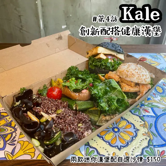 看見這價錢實在有點卻步,但為了完成全個餐牌,還是試了一下。🥗 兩款迷你漢堡配自選沙律 $150✿ Tofumania 豆腐茄子配腰果醬漢堡漢堡的確有點迷你。雙層豆腐的口感很好,但沒有想像中般硬身。茄子存在感很低,腰果醬也吃不出味道。竹炭漢堡味道突出,能彌補這素食漢堡配搭比較清淡的缺陷。✿ Black Jack 手撕大樹菠蘿配燒烤醬漢堡第一次試煮熟後的大樹菠蘿,是種很新奇的吃法。口感很像豬肉,甜甜的非常清新。這款白色的麵包味道比較清淡,沒有搶掉大樹菠蘿的風頭。題外話,原本以為甜甜的水果都是沒有甚麼營養,但原來大樹菠蘿很有營養,含有維他命A、B2、B3、B6、葉酸、膳食纖維和蛋白酶,礦物質方面則有鈣、鐵、鎂、磷、鉀、鋅、銅、錳、硒。另外兩款選擇:✿ 紅菜頭漢堡扒配牛油果蓉漢堡✿ 鷹嘴豆蓉餅甘藍香草醬配車厘茄漢堡.✿ 自選沙律共有5款沙律可供選擇,5款全選都可以。為了均衡更多營養,沒偏食習慣的當然全選就好了。沙律可以參考之前貼文。.纖維碳水量足夠,但一如以往的素食缺陷,只有太少蛋白質,而且價錢實在太貴,不會encore這款了。.健康評分:3/5性價比:2/5.Kale (中環)中環利源西街26號地舖…查看更多