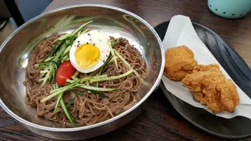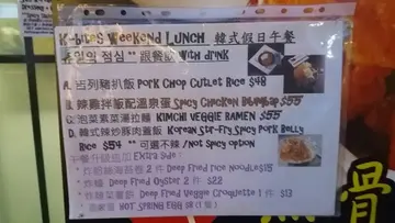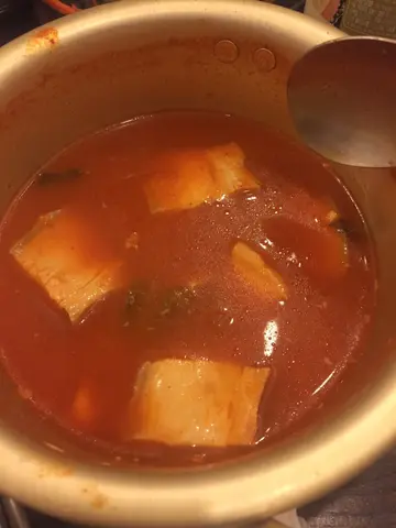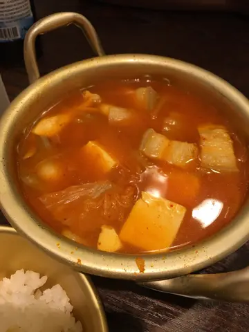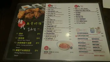 點左泡菜豬肉鍋、芥末黑醋炸雞半份$66、啤酒一支,合共$144我本身對泡菜鍋情有獨鍾,所以要求比較高,自己亦有上網睇Maangchi既教學,泡菜豬肉鍋熱辣辣咁上枱,但個湯顏色咁淺色,就知道辣椒粉應該落得唔夠多,試咗一啖,味道確實偏淡。豬肉係厚切嘅豬腩肉,肥膏佔2/3,另外店主加了豆腐、洋蔥、秀珍菇。無骨炸雞半份共有4件(小饅頭既size)即叫即做係好夠熱,個皮都好夠脆,可惜醬汁完全唔掂,冇芥末味,反而似稀釋既蠔油+少少甜醋,而且雞肉裡面完全冇味道,淨係單靠外面個層皮既味道