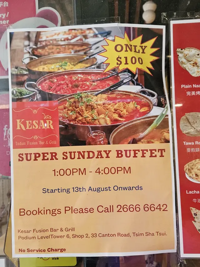 Kesar Fusion Bar & Grill (尖沙咀) 網上訂座享低至7折優惠兼賺Rice Dollars 網址: https://s.openrice.com/QrbS0Ge4B00 地址: 香港尖沙咀廣東道33號中港城平台2號舖 電話: +852 26666642