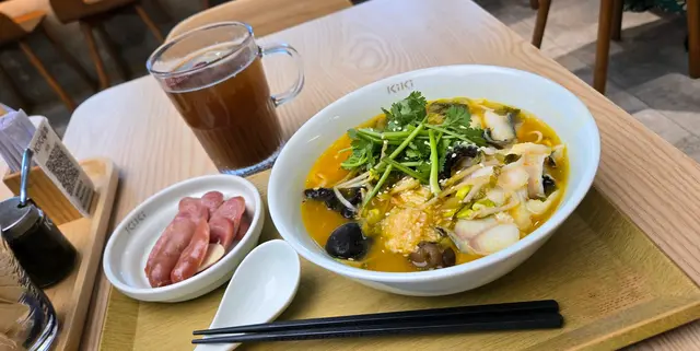 KiKi Noodle 係我心目中「靚又有料」嘅台式麵店代表。今次試咗麻油雞麵+小食鹽酥雞+冬瓜檸檬茶。麻油雞湯底香氣撲鼻,唔會過油,喝落有中藥甘味,暖胃又滋潤;雞肉大塊,肉嫩唔柴;麵條係KiKi牌子,彈牙煙韌又唔會糊,完美吸晒湯汁。鹽酥雞皮脆肉嫩,冇雪味,蒜香濃郁,一食停唔到口。飲品方面,冬瓜茶有天然甜味,唔似坊間死甜,配檸檬仲有微酸提味,飲完好清爽。地方裝修走簡約木系風,好啱打卡,燈光柔和,影人又影食物都靚。人均約$120,性價比唔錯,無論味覺定視覺都兼顧到!…查看更多