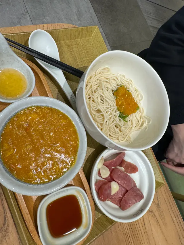手機下單十分方便,我選了個全日套餐 ($148),包括小食+主食+飲品各一款。**小食: 台灣腸經典嘅台灣腸, 配上蒜片, 好有台灣夜市風味,惹味開胃。**主食: 蟹黃油拌麵 (+$10)蟹黃真係大大碗, 而蟹黃油則另上, 我不明白用意何在,但蟹黃麵味道偏淡, 而且當中蟹肉不多, 說實話,有點失望。順帶一提,kiki自家制辣椒醬也很出色,送麵一流。 放在調味盤上可自己隨意落,幾方便。**飲品: 熱冬瓜茶地道嘅冬瓜茶, 貼近台灣口味,味道偏甜查看更多