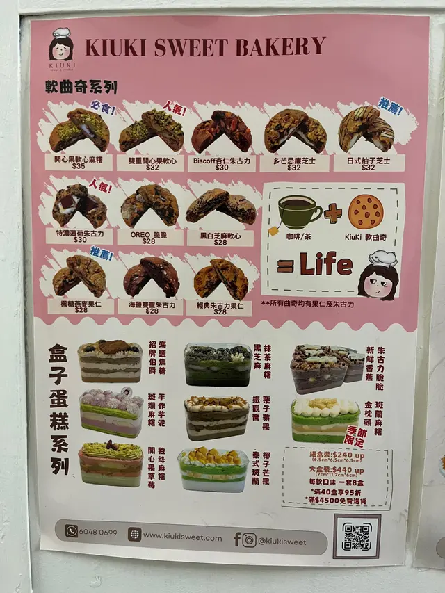 Kiuki Sweet Bakery (觀塘) 網址: https://s.openrice.com/QrbS0xVGB00 地址: 香港觀塘成業街19-21號成業工業大廈4樓17室 電話: +852 60480699