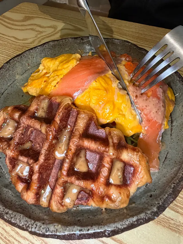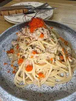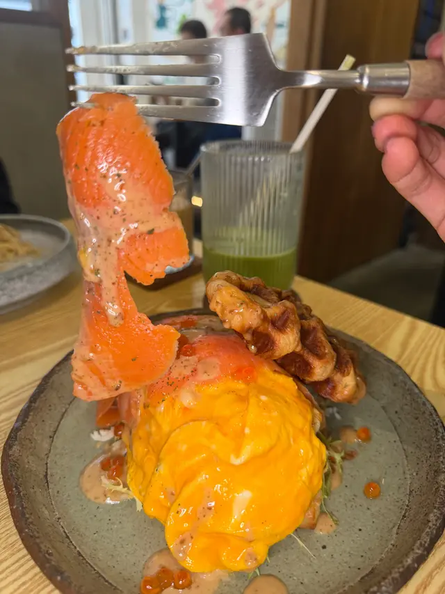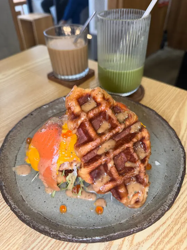 今日朋友帶我嚟到深水埗基隆街呢間 Kokoni Cafe 話呢條街開咗唔少舒適Cafe 話想黎chill下😬 嚟到店外 見到有戶外可以坐 依家呢啲涼涼哋嘅天氣都好適合😌仲有個pasta Menu擺咗喺出面 係用粉筆寫嘅手寫字🫶🏻係幾有feel~~ 入到去仲有飲品、麵包、同埋甜品嘅餐牌 拎咗個餐牌去座位 諗好就去落單啦~~落完單就自助拎埋碟同刀叉 都方便嘅~~ Hojicha latte 必點!好香濃嘅焙茶味 配上打得好滑嘅奶泡 仲有咁靚嘅拉花 好味得嚟 見到都心情好好🥰 Matcha latte朋友就點咗抹茶latte 我飲咗一啖 濃濃抹茶味 唔會好甜👍🏻見到佢餐牌仲有一個抹茶special 就係豆腐加燕麥奶再加抹茶 作為抹茶喜愛者既佢 已經話下次要試呢個🤣 龍蝦明太子 Egg Drop滑蛋真係煮得好好 厚身得來又滑👍🏻 見到明太子真係即刻要點!麵包有烤過 龍蝦肉彈牙 配上明太子醬 再加埋沙律 輕食真係好適合😋 松葉蟹肉意粉一拎上枱真係好香😍 估唔到係有咁多蟹肉 意粉煮得啱啱好 撈埋醬汁一齊食 不錯🙂 值得一提 室內環境都不錯 每台都有適當嘅空間 亦都可以睇住咖啡師沖咖啡 都係好治癒😌 整體來講 呢間Kokoni Cafe 環境舒適 食物質素不錯 好適合同朋友一齊食嘢傾偈 渡過一個悠閒嘅下午😌…查看更多
