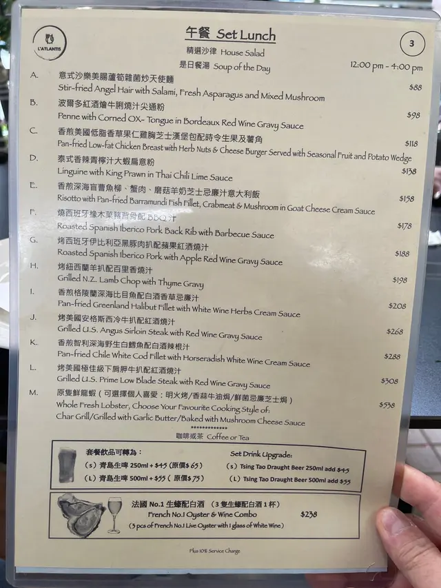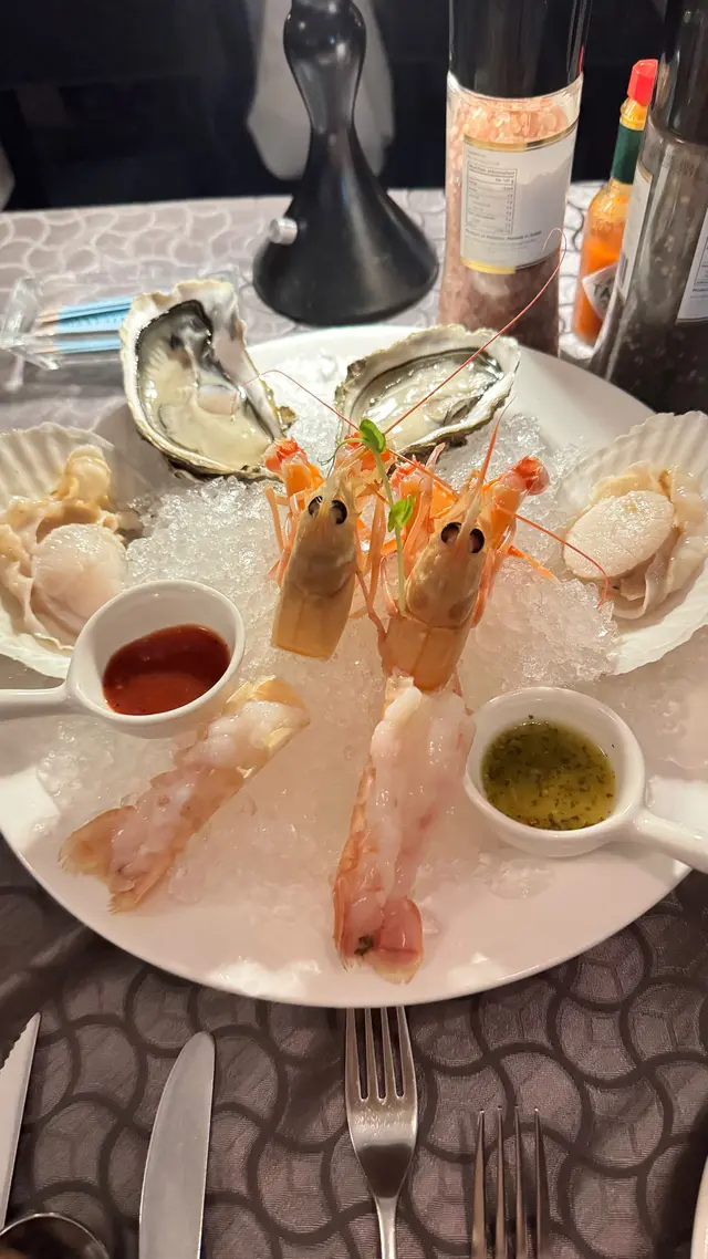 唔係剩係紀念日先要食好d㗎~平時都要為自己增添一點儀式感💖之前響附近出event發現原來黄金泳灘有間咁靚嘅餐廳😳今次就嚟試試佢~餐廳環境一流,樓底高有落地玻璃,下午日落應該仲有feel✨職員熱情有禮good good👍🏻唔想諗直接叫個Set Dinner,好似好豐富🤤開始先welcome drink,有紅酒白酒揀,不過我揀咗Fruit Punch😆~💜法國迷你海鮮拼盤有法國No.1生蠔/法國深海龍蝦仔/鮮扇貝~海鮮新鮮鮮甜,食完即刻開胃👍🏻~💜西班牙伊比利亞48個月風乾火腿伴金瓜另一冷盤開胃菜~乾火腿嘅咸配上甜甜嘅金瓜好衝擊但又好夾,好味👍🏻~💜龍蝦濃湯大推介,濃味得嚟唔會好heavy有層次,唔會好似坊間一般得個重咸味~💜意大利白松露忌廉湯呢個都大推,好creamy加上淡淡嘅白松露香好想encore好好味~💜香煎深海野生格陵蘭比目魚扒配香草白酒忌廉汁最鍾意魚扒冇骨啖啖肉~滿足爽快🤤魚扒厚實但爽口鮮味,魚控必叫!!!!💜烤澳洲M4和牛肉眼扒配紅酒燒汁熟成度煎得啱啱好~食得出食材肉質真係A+++!!肉同脂肪比例好好唔韌,食肉獸一定愛爆👍🏻~😆食主菜時唔好漏咗側邊配菜,都係心機之作超有驚喜🫵🏻~💜歐陸甜品甜品係心太軟同芝士蛋糕~心太軟超級好食,keep住暖暖地真係做到流心效果,外皮都焗到脆口好食👍🏻~…查看更多
