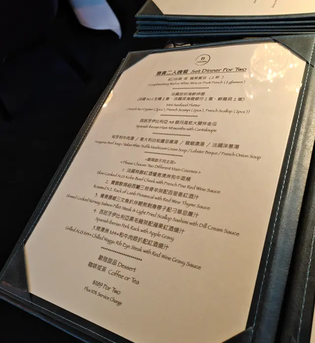 太太生日🎂,訂座此間餐廳,order 二人尊貴套餐,之前每當游完水,想嘆番杯,太太總是喜歡這裡之生啤1664,首先來每人一杯🍻😊,前菜,龍蝦湯,主菜三文魚配帶子,M5和牛,再配紅酒🍷🍸 白酒,所有食材賣相非常出色👍,餐廳內環境浪漫,配上悠和燈光及懷舊英文老歌,一邊吃相當有情調,另外尤其每一位服務員招待服務態度非常親切,有禮👍,消費合共約$1600,總括而言,為太太安排這頓生日晚餐非常滿意,well done👍👍👍…查看更多