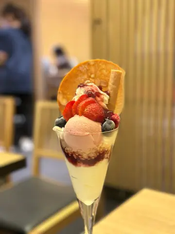 好耐冇食ufufu,今次黎左葵芳店食,以前成日大排長龍,星期六5點幾黎到唔洗等位。抹茶拿鐵,糖水自己落所以唔會太甜,抹茶味唔會太濃,正正常常。明太子烏賊忌廉意粉$118,記得以前已經好鐘意食呢個意粉😍😍味道不變都仲係好好食,醬汁會稀少少,食落唔會好膩👍👍鰻魚撈烏冬溫泉蛋$138,鰻魚都係正常發揮,烏冬汁偏甜,覺得唔係好夾。粟米魚餅$55,香香脆脆熱辣辣,不錯👍焦糖香蕉法式吐司$88,個吐司好特別,食落好似食緊蛋糕咁🤗個雪糕係焦糖雪糕、少少甜,下次可以試下其他口味。TIRA栗子蓉芭菲$92,栗子蓉好好食,上面有個tiramisu蛋糕,朱古力雪糕,成個芭菲都好食。