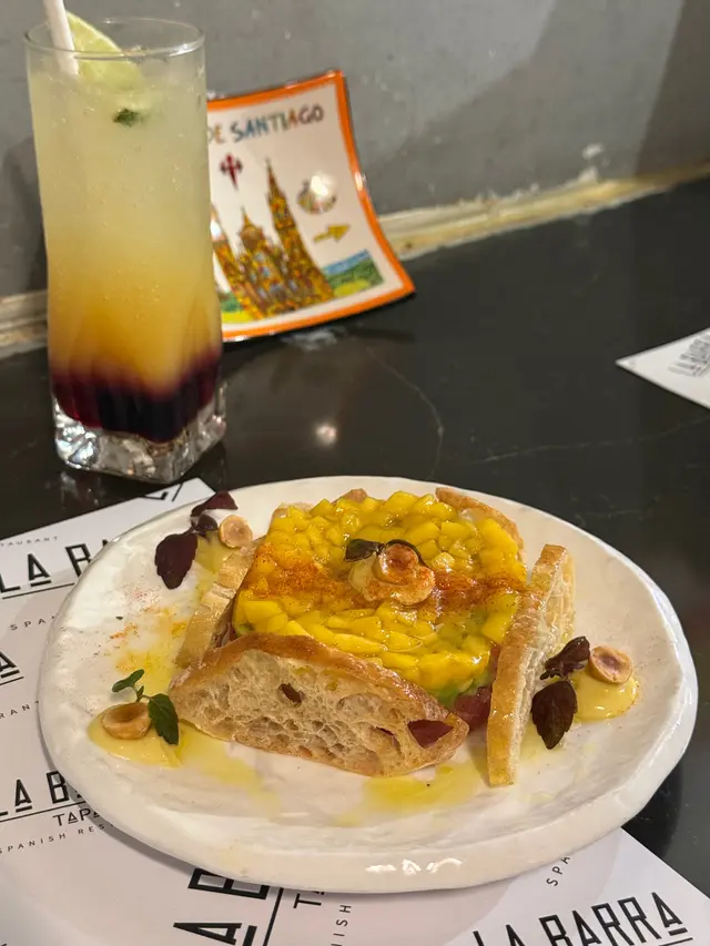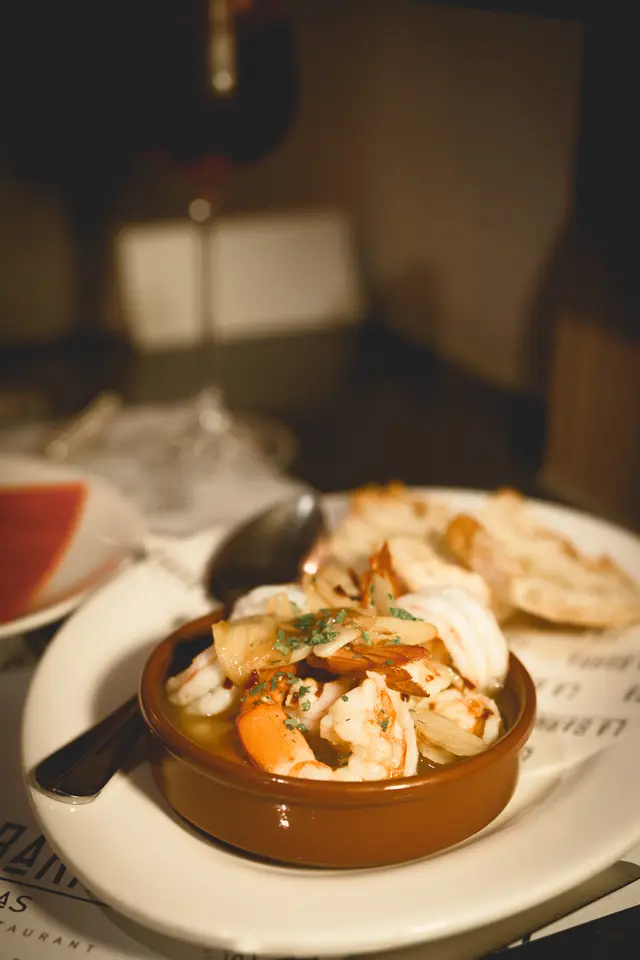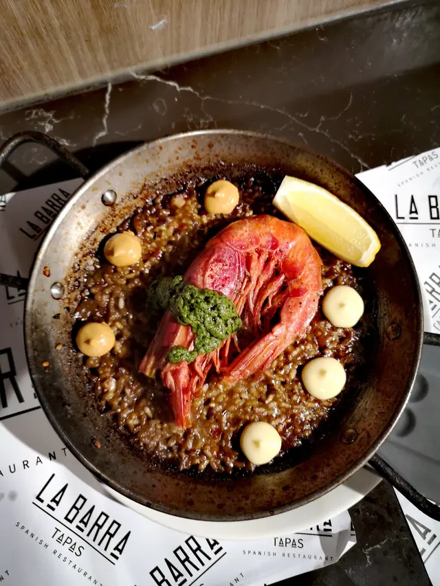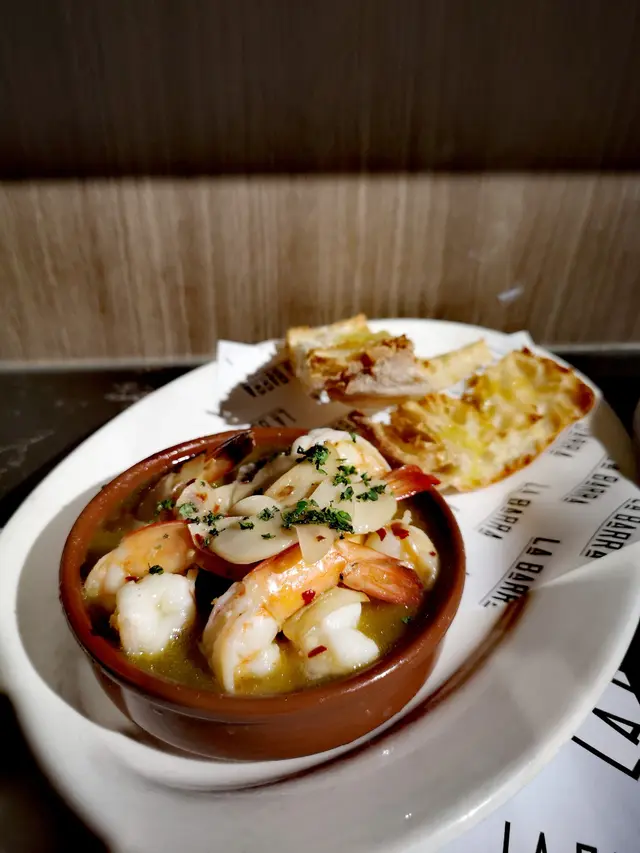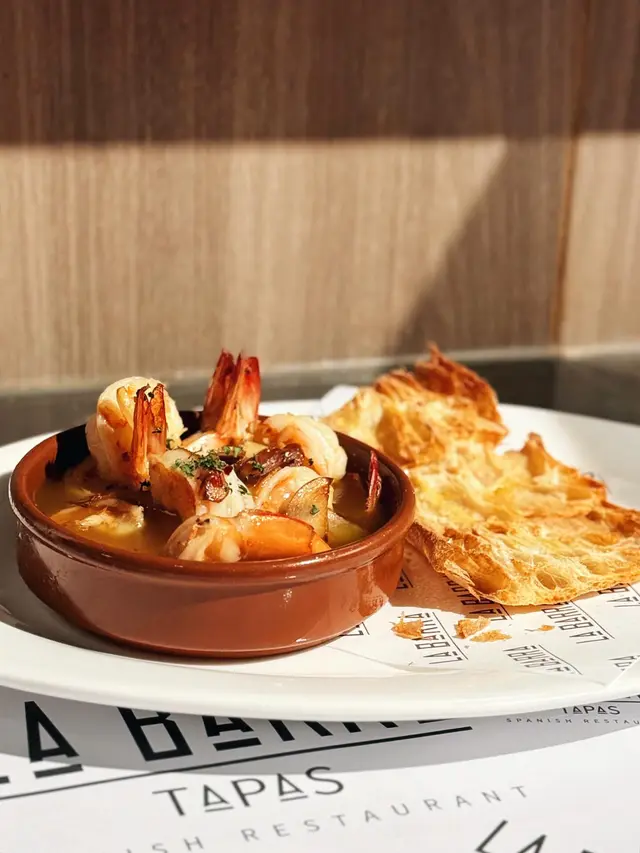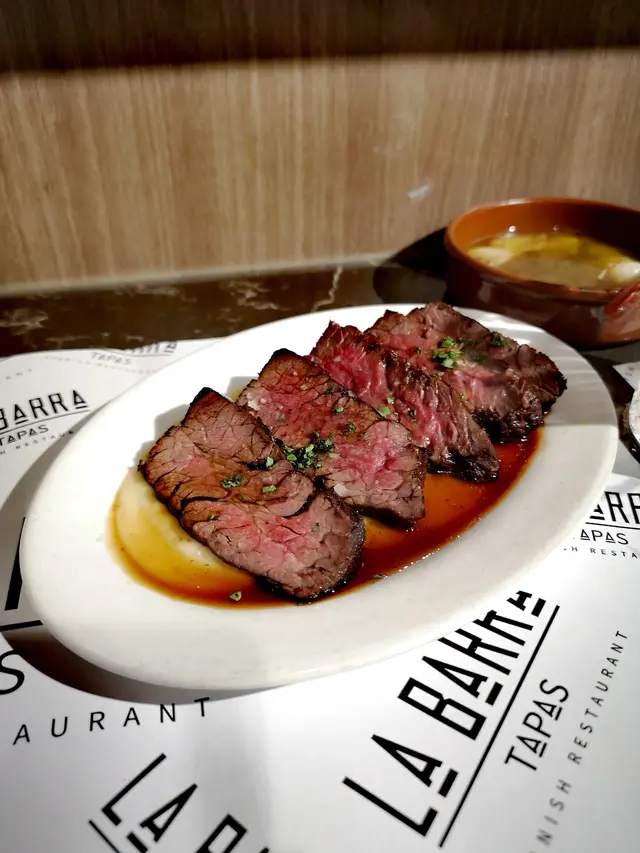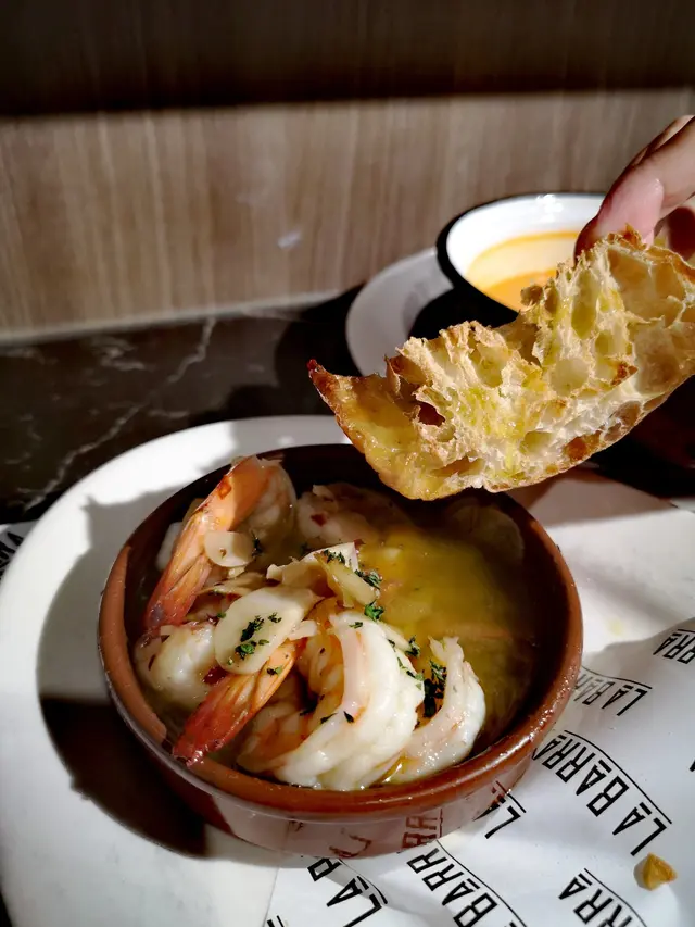 這間餐廳四年前來過,一直念念不忘它的西班牙飯,好感動可以再重遇返,美食依然好味,水準不減,難怪食客絡繹不絕,真的需要提前BOOK定,否則怕你會摸門釘食唔到!店子地方確實不大,但美食選擇甚多,傳統正宗的西班牙菜樣樣好味,想味蕾感動一定要來。西班牙凍湯 $68凍湯清新可口,蕃茄味濃郁,酸甜滋味恰到好處。湯面還有香脆的麵包脆餅、蛋碎和鹹鮮的鯷魚,令人驚喜,份量足夠二人分享,值得一試。西班牙蒜油蝦 $108大蝦鮮甜彈牙,浸滿了橄欖油和蒜片的清香,搭配酸種麵包浸油食好味。封門柳 $168封門柳七成熟,肉質軟嫩,牛味濃郁,搭配鷹嘴豆泥,口感綿滑,味道唔錯。西班牙紅蝦飯 $328西班牙燉飯以蝦湯熬製,咸香味滲透每粒飯中,口感軟中帶硬,非常滋味。配上大隻的西班牙紅蝦,鮮味比一般海蝦濃香數倍,蝦頭內的蝦膏是精髓所在,店員會幫你將蝦膏取出,混入飯中撈勻。加上蒜香蛋黃醬和香草醬,每一口飯都令人滿足,鮮味到呢,絕對是全晚的MVP。巴斯克芝士蛋糕 $88蛋糕熱食,口感鬆軟,類似燉蛋,與一般的巴斯克芝士蛋糕有所不同。芝士味濃郁,十分好味。見到不少食客用作生日蛋糕慶祝,實在特別。…查看更多