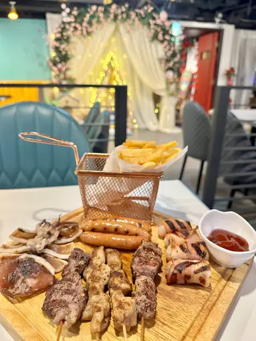 星期六帶小朋友出去通常都會揾親子餐廳,小朋友有得食有得玩,大人有大人傾計,簡直一舉幾得。呢到環境好大,室外有個打卡位,而家天氣温度坐室外都岩岩好。串燒拼盤煙肉荔枝串煙肉香口,荔枝香甜多汁;霜降牛排粒牛肉味道濃郁;泰式豬頸肉肉質嫩滑有咬口;薯條熱辣辣香脆可口;鷄肉串肉質嫩林;燒魷魚入口爽脆。Pizza Hawaiian材料有自家製有機蕃茄醬,水牛芝士,意大利火腿,菠蘿,蕃茄醬酸酸甜甜,芝士濃郁,意大利火腿鹹香味適中,菠蘿非常香甜,餅底煙靭可口。意式燒走地雞半隻配多色有機時令烤菜雞肉非常嫩滑,外皮香脆,一咬開好多汁,烤菜有香甜粟米,爽口西蘭花和翠玉瓜,酸酸甜甜車厘茄。蘋果汁香甜,小朋友最中意飲。…查看更多