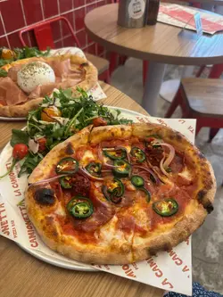 📍 La Camionetta (中环)-simply prosciutto 簡單的義大利生火腿($188)⭐️⭐️⭐️⭐️披薩餅皮煙靭香口,加上特製辣椒油真係好食!我覺得最開心嘅係staff好熱情😂會主動拍手影相,都好熱情合照,餐廳氛圍好食飯都開心啲🤭-提拉米蘇⭐️⭐️⭐️正常水準,食到最底有些濕,但係影響不大,好味睇返openrice發現lunch set比較抵食,$148就可以食到pizza➕飲品➕甜品 🥲🥲🥲 不過對女仔來說會太飽!人均:100-200地址:中环苏豪伊利近街12A号地舖…查看更多