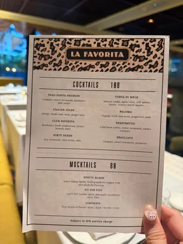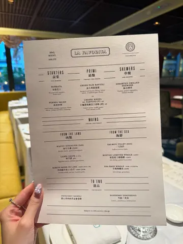 係鰂魚涌英皇道979號太古坊濠豐大厦2樓 ge 呢間La Favorita, 之前係到番工, lunch 都成日過去食, 知佢食物質素都唔錯!!! 見佢而家有個意式燒烤週末早午餐好吸引呢~ 星期六黎食唔洗趕番工, 可以慢慢食, 係幾CHILL~~~ 餐廳係鰂魚涌太古坊,裝修充滿60年代嘅意大利復古風,好適合打卡影靚相。今日星期六,出黎拍下拖,黎左呢間到食佢個意式燒烤週末早午餐~~ 一個價錢有晒前菜,頭盤,串燒,主菜,仲有甜品添!!!令我呢個星期六好豐富呀!! 佢哋主菜選擇多,包括和牛牛柳、烤羊排、龍蝦同海鱸魚,今次我就加錢簡左1.2公斤骨肉眼牛扒!!!!!!!呢個主菜揀咗五成熟嘅骨肉眼牛扒,質感嫩滑,好滿足!!!! 中意食牛嘅叫呢個食會好開心~~~~另外仲有沙律菜食~夠晒FRESH!!!前菜方面今日食咗布袋芝士,茴香沙律. 2款都好特別!! 茴香沙律仲有橙肉, 夠晒開胃~意大利菠菜餃同埋巨輪黑松露芝士意粉,芝士味香濃口感豐富。巨輪黑松露芝士意粉真係好好食, 芝士味濃,加埋黑松露 超香~ 呢款真係好特別!!!仲試咗綜合串燒,有烤蔬菜同意大利腸,啱晒燒烤迷。串燒方面有大蝦、香腸同蔬菜!!!!!串燒蝦都好大隻~~~!!!好啱一齊分享。甜品部分更加驚喜,有開心果西西里忌廉卷餅同雪葩三重奏,完美收尾!另外叫咗兩杯特色飲品,第一杯係 Spritz Blash,配料包括 Lyre's Italian Spritz,再加埋鮮榨紅柚汁 最後用無酒精 Prosecco 點綴,清新又醒神,好啱夏天飲!另一杯就係 No Gin Fizz,入面有 Lyre's Dry London Spirit,再加入菠蘿、士多啤梨、薄荷同青檸,甜甜酸酸,仲帶少少草本香,飲落好滋味又解渴!兩杯都係無酒精版,唔飲酒都可以感受到cocktail嘅層次同享受~~呢間餐廳環境都好NICE~, 裝修好有外國FEEL ~ 而食物份量都好足~ 星期六日過黎抖下吹水食下野, 呢到係幾唔錯~~呢個週末早午餐好滿足呢~~~…查看更多