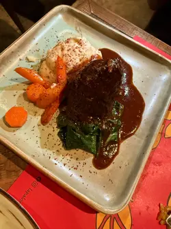 MOJO PICON" BEEF CHEEK, CELERIAC PURE BARY CARROTS & SPINACH
