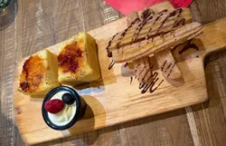 CHURROS, CHOCOLATE SAUCE "TORRLIAS", VANILLA ICE-CREAM