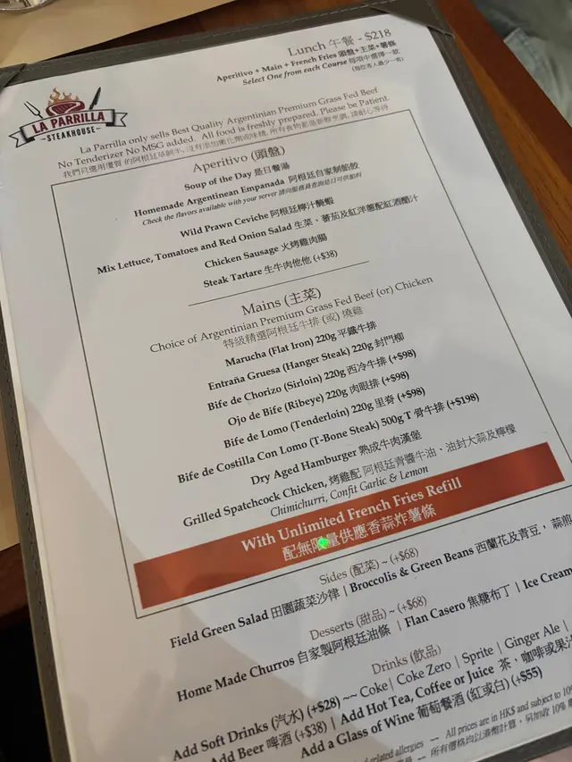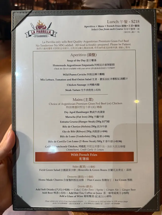 呢晚同朋友一齊嚟咗呢間喺北角嘅阿根廷🇦🇷餐廳食晚餐🤣餐廳依家有 $448 DINNER SET 可以自由組合🤩,Dinner Set 喺阿根廷🇦🇷都幾難搵得到,因為喺阿根廷🇦🇷嘅餐廳基本上晚市都係做 a la carte,呢間餐廳迎合香港🇭🇰市場提供 Dinner Set 真係 very nice 🤩;晚餐 - 包括 Soup + Aperitivo + Main + Side + Dessert 餐湯+頭盤+主菜+配菜+甜品 🤣阿根廷🇦🇷係一個非常值得去旅遊🧳同探索嘅地方,喺南美洲嚟講亦都係治安相對地比較好🤩,好多好靚嘅地方例如 Patagonia, Ushuaia, Iguazú Falls, Mendoza, El Calafate, Buenos Aires 等等真係多到數唔晒,所以我唔止去過一次阿根廷🇦🇷旅行🧳,但係我對阿根廷菜🇦🇷又一啲都唔熟悉喎🤣,只係知道 阿根廷菜🇦🇷受多國菜式同埋文化影響,包括阿根廷🇦🇷土著人民(Indigenous People in Argentina)嘅飲食習慣、16世紀 西班牙人🇪🇸喺殖民時期 Spanish Colonization 帶嚟嘅地中海飲食文化、19/20 世紀 由意大利🇮🇹同西班牙🇪🇸大量移民帶到阿根廷🇦🇷嘅影響,咁可以想像阿根廷菜🇦🇷幾咁包羅萬有🤩;阿根廷人🇦🇷食好多牛肉,不過某啲地區例如 Patagonia 就食羊多過食牛😋🤩呢日嘅餐湯係「南瓜湯」:幾creamy 幾好飲🤣頭盤「阿根廷自家製餡餃 Homemade Argentinean Empanada」:Empanada 呢個名係嚟自西班牙文🇪🇸,呢個菜式就喺西班牙以至歐洲同拉丁美洲都非常流行😋;呢度嘅 Empanada 大大隻,外皮酥脆裏邊嘅雞肉餡料熱辣辣好味道🤣主菜「烤雞配阿根廷青醬牛油油封大蒜及檸檬 Grilled Spatchcock Chicken」:《Butterflying 起雙飛》大多數人都應該聽過,就係將肉幾乎切開成兩半但係保持中間相連部份唔完全切開,Spatchcocking 係一種將家禽 Butterflying 嘅特殊方法,通常去除家禽嘅脊椎骨,然後將成隻雞(家禽)壓平,咁樣烹調嘅時候可以平均受熱用短啲時間煮熟🤣;呢間餐廳嘅 Spatchcock Chicken 睇落有半隻冇去骨嘅雞係有自家特色嘅 Spatchcocking 同一般嘅 Butterflying 唔同 🤣,雞肉就肉質軟熟得嚟有少少咬頭,亦好雞味,加埋青醬就增添少少清新嘅感覺😋;餐牌寫住材料有《Chimichurri, Confit Garlic & Lemon》🤩配菜「西蘭花🥦及青豆🫛蒜煎🧄 Broccolis & Green Beans」:西蘭花🥦同青豆🫛都新鮮幾爽脆,似乎輕輕用蒜頭🧄炒過🤣另外單點咗一個 $328「烤羊架 Grilled Lamb Rack」:要咗 medium well,廚師控制生熟程度控制得幾好🤣;呢隻羊應該生前食好多嘢同埋唔太鍾意做運動,所以脂肪含量相當充足🤣,所以肉質好甘香,兼夠滑🤣,羊肉上邊亦都係加咗大量青醬,咁口感就清新啲🤣;仲有橙橙哋色超級滑嘅 Sweet Potato Mash 可以食🤣甜品「焦糖布丁 Flan Casero」:勁甜,係好勁嗰隻,夠滑,勁甜所以食得人好開心🤣…查看更多
