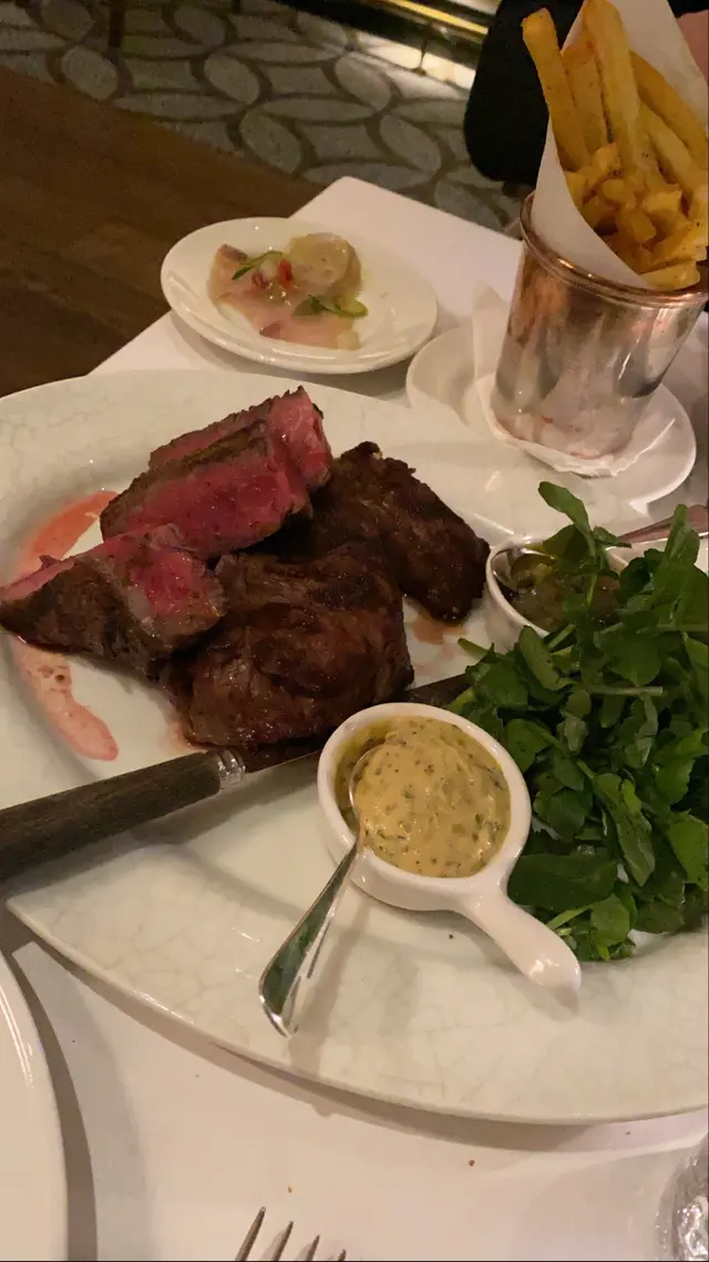 burrata 非常好味 做得好滑再襯返蕃茄 好開胃escargots 好濃味 非常香 但略嫌有少少鹹得滯 送酒飲一流yellowtail carpaccio 酸酸地非常開胃 份量亦都唔少 rib eye steak 非常一般 唔係好食但都唔係難食apple pie with icecream 全晚最高分 甜得黎唔膩雪糕亦非常好食 整體來講環境非常靚 個vibe好似去咗歐洲咁 但啲枱擺得有啲迫 好似你講咩隔離都聽得一清二楚咁 唔係太鍾意 但整體來講都算唔錯 只係食物有啲太貴…查看更多