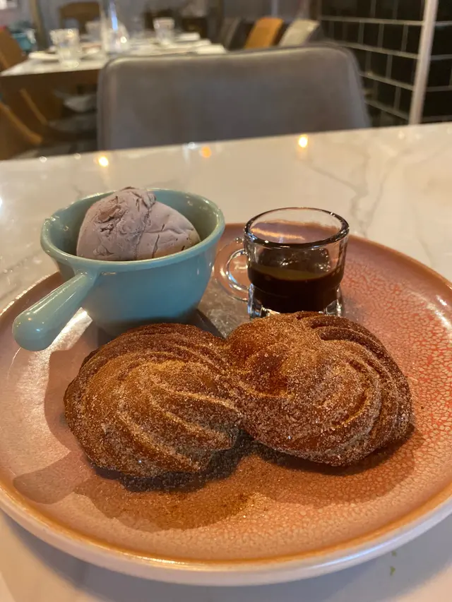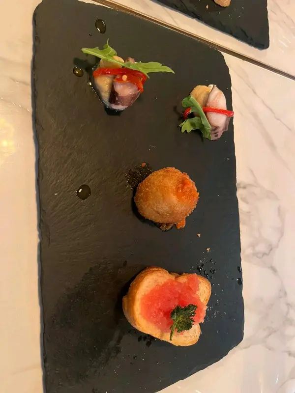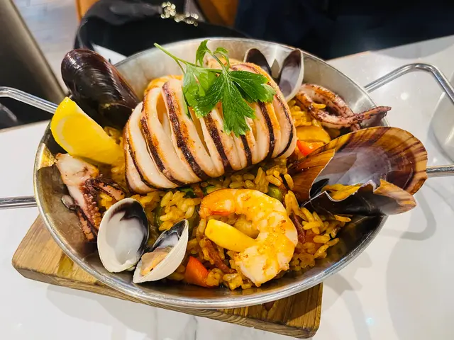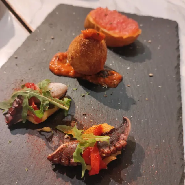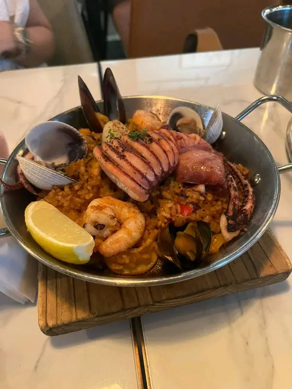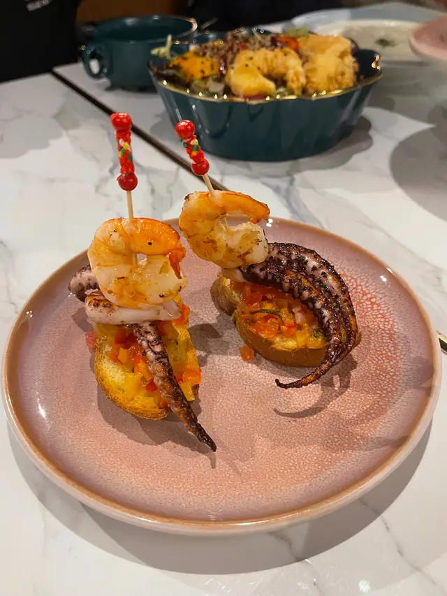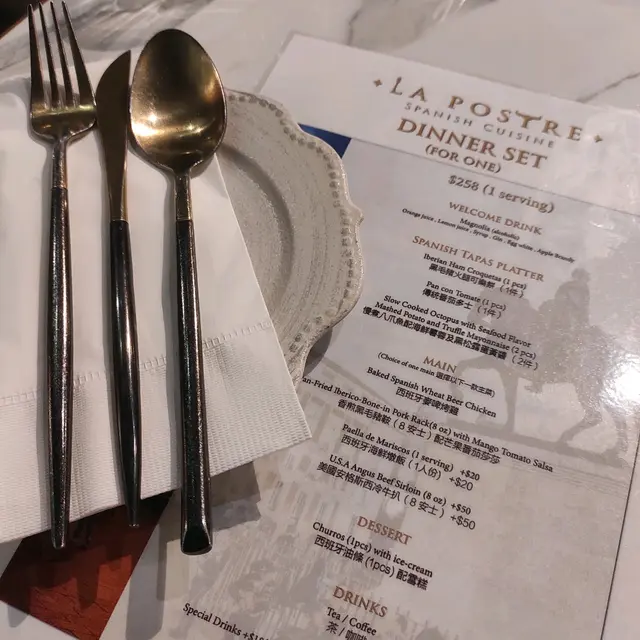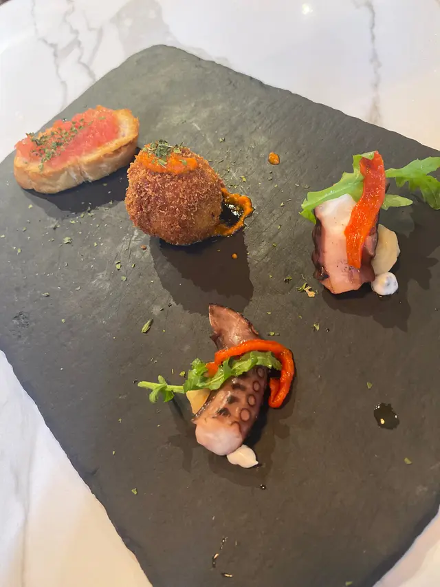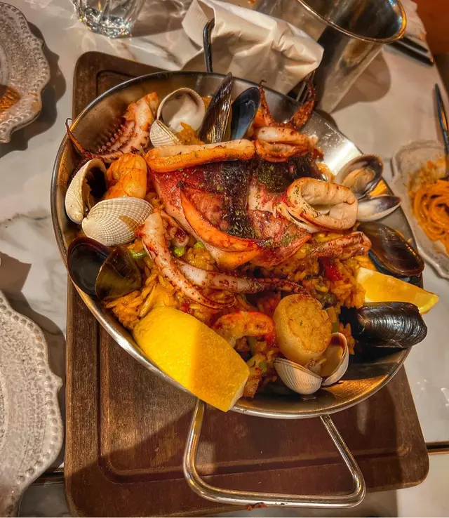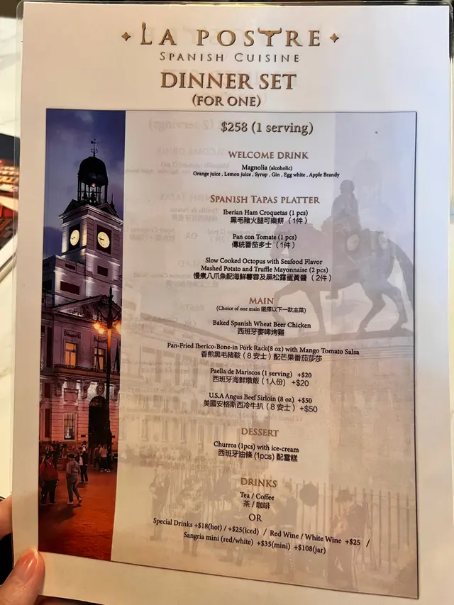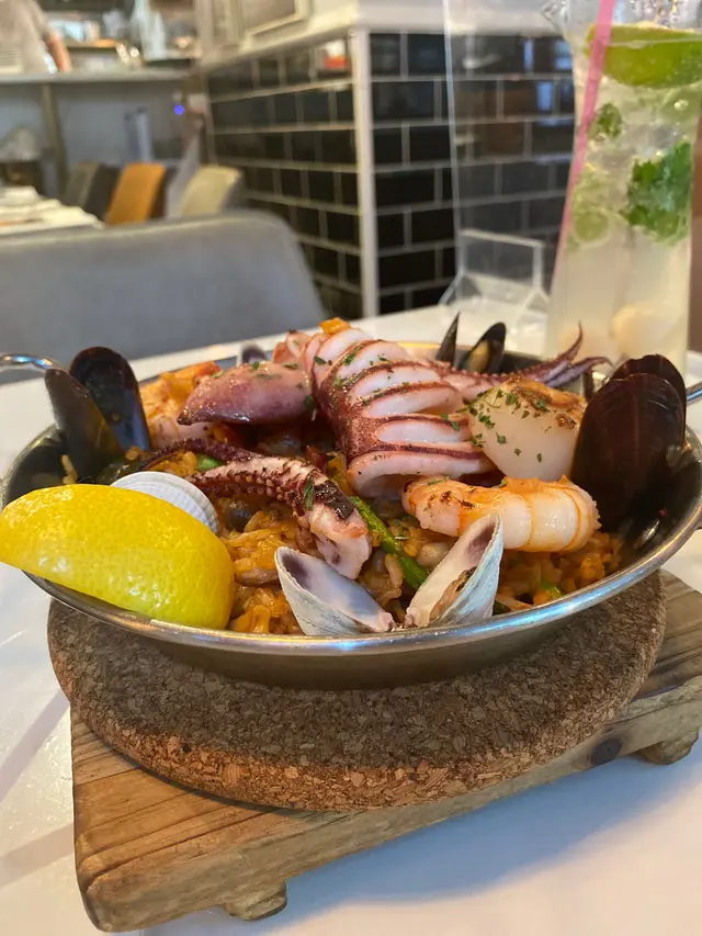 Set dinner包咗welcom drink, 頭盤,主菜,甜品,餐飲,口味調教過比較偏向港式頭盤包括左慢煮八爪魚,可樂餅,蕃茄吐司。八爪魚煮得啱啱好味道亦鮮甜,可樂餅口感香脆豐富,對比上來番茄吐司就有啲普通主菜豬鞍扒味道合格肉質亦算鬆軟,反而墊底嘅薯蓉有驚喜西班牙海鮮飯海鮮款式豐富而且味道濃郁,但食多幾啖就有啲偏鹹嘅感覺甜品係西班牙馳名油炸鬼配雪糕,新鮮即製外脆內軟,上面仲灑上肉桂糖,配雪糕一冷一熱好滋味…查看更多