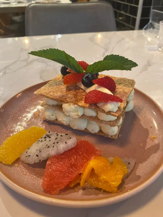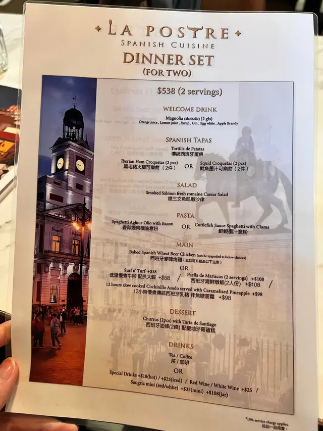 收工約埋朋友一齊試呢間bookmark咗嘅西班牙餐廳,我哋叫咗:✿西班牙海鮮燉飯(一人份) $188-西班牙菜一定會食燉飯,呢間燉飯軟硬&濃淡都適中,而且好足料,有齊多款海鮮:魷魚、帶子、大蝦、青口、蜆,食落非常滿足🤗️✿一人Dinner Set $258Welcome Drink:Magnolia-細細杯開胃酒,酸酸甜甜似有酒味嘅fruit punch。前菜:黑毛豬火腿可樂餅、傳統蕃茄多士、慢煮八爪魚配海鮮薯蓉及黑松露蛋黃醬-前菜種類多但一般,八爪魚偏硬,其他都好普通。主菜:香煎黑毛豬鞍配芒果蕃茄莎莎-呢個有啲失望,雖然豬有豬味,但係肉質偏嚡,莎莎醬亦唔出彩,反而薯蓉就幾creamy。甜品:西班牙油條配雪糕-好邪惡嘅甜品😈油炸嘅churros鋪滿砂糖同玉桂粉,配埋朱古力雪糕,食出冰火嘅感覺,仲有個朱古力甜酒醬,配搭一流!✿鮮雜果拿破崙蛋糕 $62-呢個好好食😋拿破崙焗得好香脆,中間嘅cream甜而不膩,加埋新鮮水果,係清新之選~✿無酒精荔枝Mojito (dinner set +$25)-Mojito好大杯非常抵飲,兩個人share都得。味道非常refresh解渴,但略嫌荔枝味唔夠突出。整體食物質素合格,幾有西班牙風味🇪🇸環境舒適,座位算闊落,店員服務態度良好,但餐廳廁所衛生情況有待改善。平日晚市都旺場,建議預先訂座,用餐時限為120分鐘。…查看更多