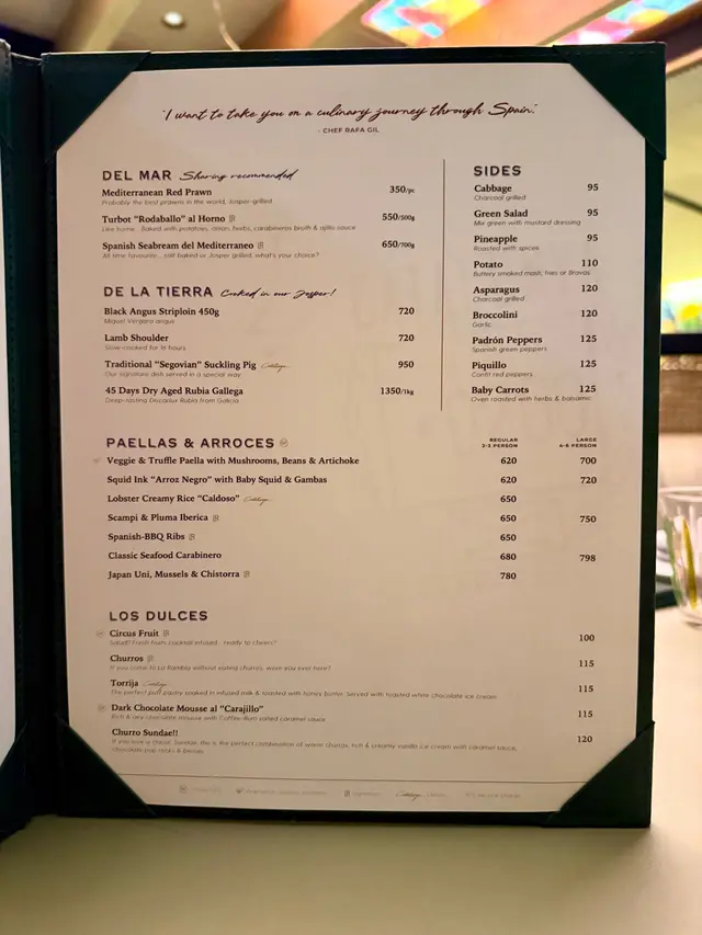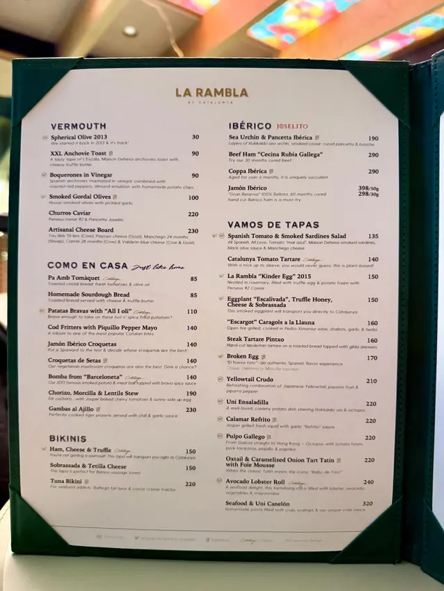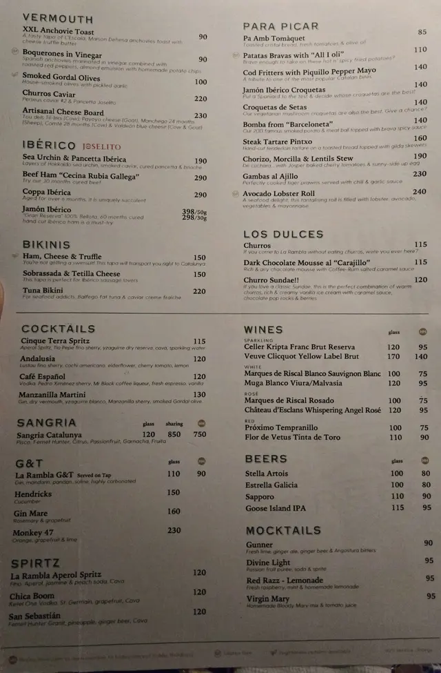 四天復活節連假眨眼間過去,回想假期前一晚已經在 「La Rambla」開始盡情吃喝,吃喝吃喝吃喝直至假期結束為止。所以「LaRambla」之回歸,也代表著我小肚腩的回歸。為了美食而犧牲是值得的,Ole Ole Ole~踏進 「La Rambla」,馬上被戶外平台所吸引,無敵近距離維港夜景配合非常 Chill 的氛圍,加上天氣清爽舒服,真是一絕的享受!先由酒精開始。Spirit Cart 讓你享受 Make your won 的自由配搭, 我的 Hendrick's + Pink Grapefruit Soda HK$165,Fancy 又可親。精彩、多樣化的西班牙小食,不管醫肚,還是佐酒也大派用場。率先嘗試的 Smoked Godal Olives HK$100,厚肉與爽脆度均勝人一籌的特大橄欖,是屬於西班牙戈達爾品種,經過自家煙燻,味道相當獨特!而白色的是鹹香帶酸的西班牙醃漬蒜頭。兩者合拼,胃納瞬間被啟動!一向喜歡吃鯷魚,無可厚非 XXL Anchovie Toast HK$90 令我瞳孔即時放大。以特大的超級鯷魚配上自家製的 Tramezzini 包,還有松露 Manchego 羊奶芝士牛油,絕對是加大版的味覺享受!坦白說,鯷魚不是人見人愛的食材,可暫時也沒有碰上不愛黑毛豬火腿的朋友。 Jamon Iberico HK$398 / 50g 是精選自Joselito 品牌、熟成 60個月的伊比利黑毛豬火腿。入口甘香油膶無比、滿滿橡果的濃厚的風味,絕對是黑毛豬火腿中的極品,超讚!Pa Amb Tomaquet HK$ 85 是西班牙傳統的蕃茄麵包,麵包烘得很酥脆,蕃茄味道清新自然,假如多一點點蒜香提味,就夠完美了!Churros Caviar HK$210 有著叫人眼前一亮的賣相。以 Churros、 Jocelito 豬腩薄片,再添上 Perseus No. 2 魚子醬,組合不單新穎,還帶來矜貴奢豪的體驗!叫來巨型的 Sangria Catalunya HK$850 共享,自斟的快樂與興奮。自家製松露蜂蜜、Manchego 芝士 和 Sobrassada 香腸,有如 Magic,將炭烤茄子搖身一變,變成充滿鹹甜和炭香的 Eggplant"Escalivada", Truffle Honey, Cheese & Sobrassada HK$150。大家都不約而同很喜歡這道茄子。色彩繽紛的 Yellowtail Crudo HK$210 ,除採用日本鰤魚生魚片,更注入自家製熱情果醬、芫荽和紅蔥頭,創作靈感來自大廚 Rafa 的巴西家鄉菜! 入口是澎湃的熱情果甜香、然後是一些香菜的味道,也帶點秘魯的醃漬生魚片風味。而當中帶微辣與酸度的西班牙Piparra 青椒,惹味又好吃!Oxtail & Caramelized Onion Tart Tatin with Foie Mousse HK$220 是當晚我挺欣賞的菜式!結合焦糖化洋蔥的 Tart Tatin 令人有在吃甜品的感覺。然而餡料的慢煮 24小時牛尾、混合紅酒醬汁,還有頂部的鵝肝慕絲,令恰似甜品的Tart Tatin 頓變成了鹹甜交雜,結合焦脆與軟腍的窩心滋味,真真好吃!假如你喜歡吃豆,也愛吃燉菜,Chorizo, Morcilla & Lentils Stew HK$190 就是必吃不可!以蕃茄、西班牙辣肉腸、香腸、血腸、扁豆和蔬菜為基礎,讓人感受西班牙家庭菜的溫暖!與太陽蛋混合的燉菜,擁有溫純恰好的味道,好吃而不膩,只會嫌麵包不夠多。當晚大部份菜式也令人叫好,但論到主角、非 Traditional "Segovian" Suckling Pig HK$950 莫屬!未品嚐塞哥維亞西班牙乳豬前,大家必須經歷充滿儀式感的切豬程序,至於具體是怎樣,就留待大家親身去體驗吧!乳豬烤得完美無瑕。乳豬皮薄脆酥香,加上一咬軟腍細嫩兼多汁的豬肉,真叫味蕾喜悅。乳豬肉的原香與輕柔的醃味相輔相承,西班牙乳豬肯定是「La Rambla」的必食!友人特意點選了 Pineapple HK$95,為乳豬帶來平衡與清爽感,認真夠細心!西班牙海鮮飯是我的必點至愛,今期的 Japan Uni, Mussels & Chistorra Paella HK$780 匯合了日本海膽、青口和紅椒香腸,色彩與內容同樣豐富。經過拌勻後,日本海膽青口紅椒香腸西班牙飯呈現橙黃色澤,飯粒披了一層濃郁且油潤的海膽,感覺與別不同。至於味道方面,真的夠特別,以個人口味而言,的確頗為濃厚,適合喜歡重口味的朋友。不過,經過油封的紅椒辣 Piquillo HK$125 就非常之合我口味,甜香與椒香並重,味道又來得自然。來到甜品時段。餐牌上寫著 "If you come to La Rambla without esting churros, were you ever here?" 來形容 Churros HK$115。吃過後,認同 Churros 是 「La Rambla」的焦點甜品!Churros 很乾爽,外層微脆,內層鬆軟,咀嚼起來很舒服,口感完全不會硬實,原味已經夠好吃,附設了兩款沾醬,當然是加分!上圖是 Torrija HK$115。大廚 Rafa 被日式扁牛角酥而啟發,不過我更愛 Torrija,覺得無論自家製的酥皮麵包、厚忌廉及經烘烤過的白朱古力醬,都要比吃過的扁牛角酥出色多了!焦糖多士十分焦香,甜香來得層次豐富,醬汁香甜得來也不會產生膩意,這份焦糖多士令人無法抗拒!下圖的 Dark Chocolate Mousse al "Carajillo" HK$115,可以感受到朱古力與焦糖的混合滋味,當中更夾雜酒香,也是值得一試的甜品。此時此刻,沒有比來一杯咖啡作更完美!下次我要坐到平台,一邊嗒著雞尾酒、一邊吃著美味的菜式,再一邊欣賞著夜景,光想著也覺寫意!…查看更多