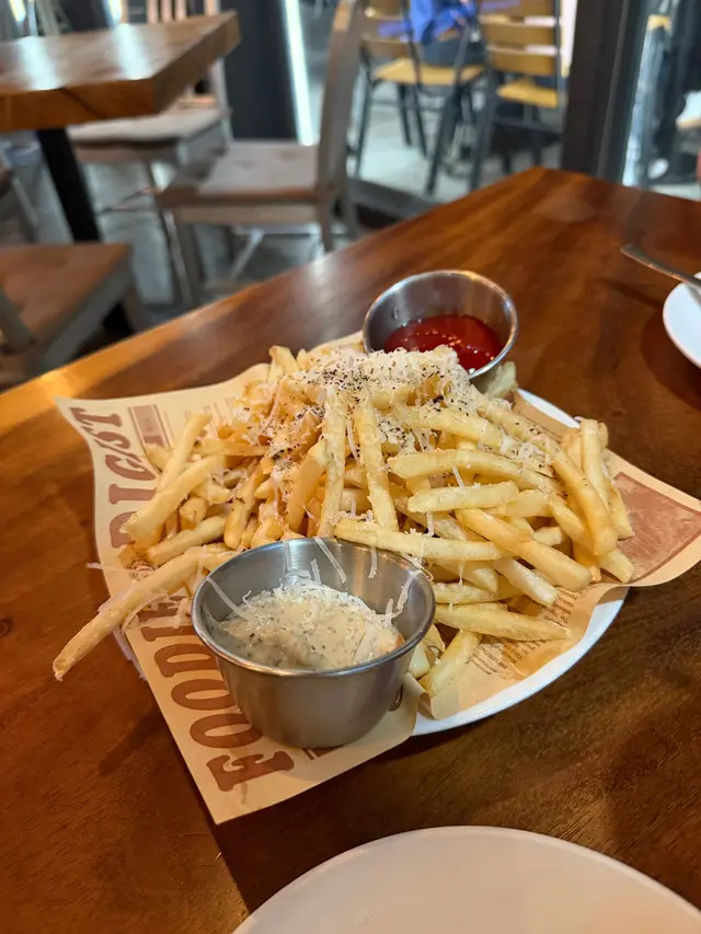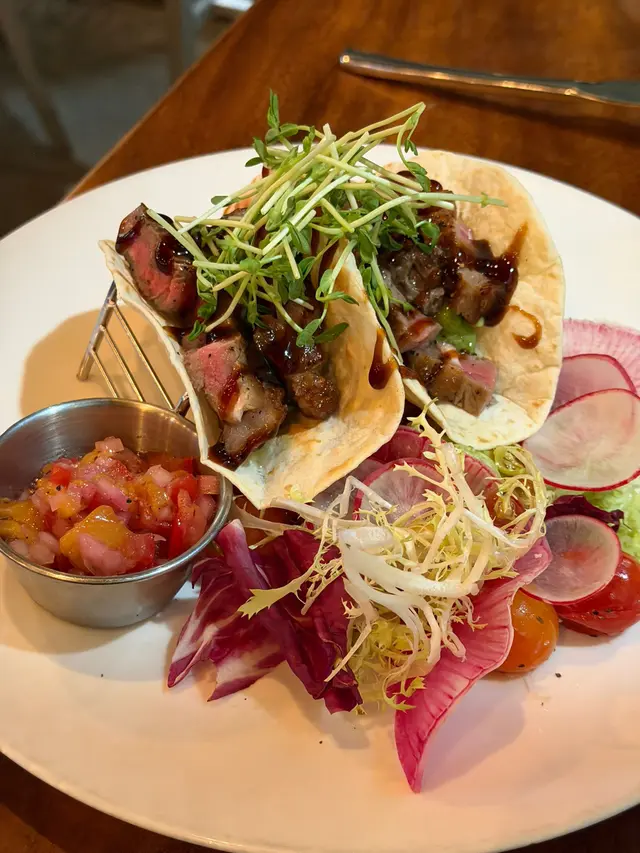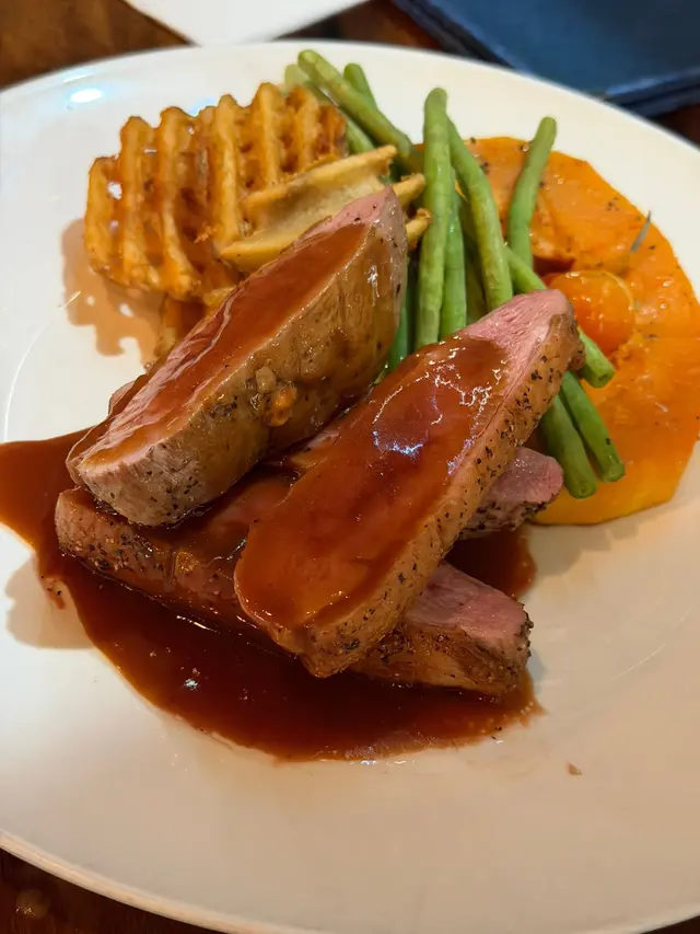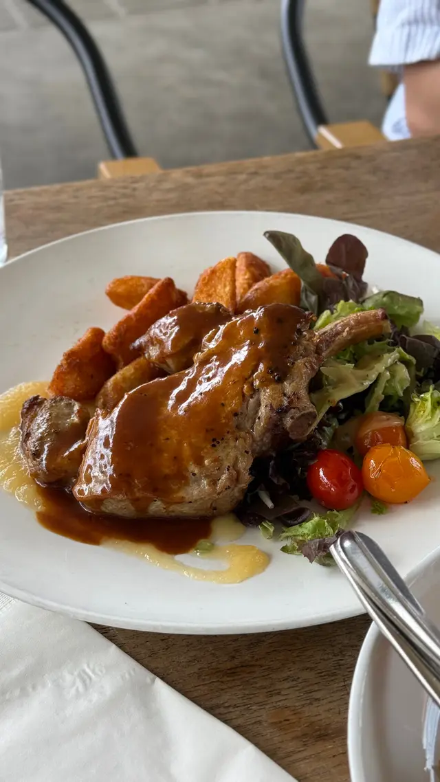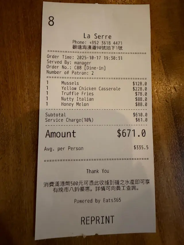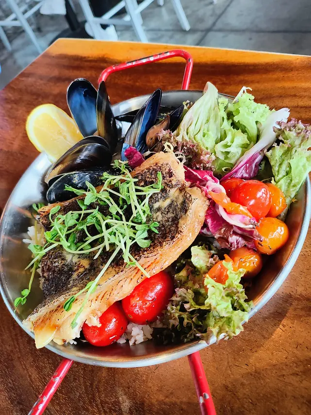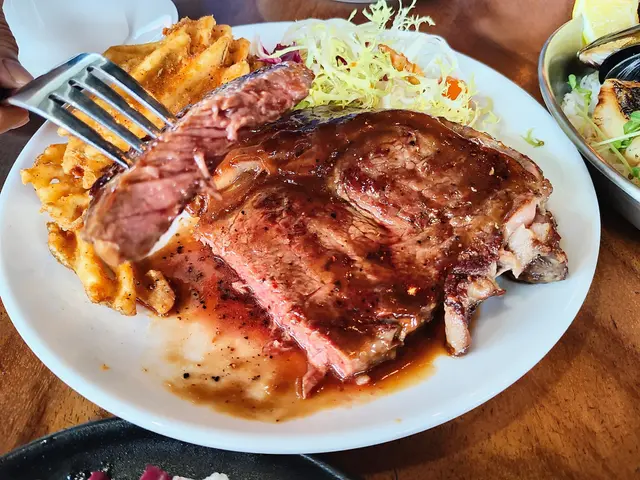 觀塘海濱可以看見海岸線的落地玻璃餐廳簡單燈飾點綴玻璃屋設有室內外位置室內輕快音樂柔和燈光室外陣陣海風 配上無邊際海景烤美國頂級安格斯肉眼扒 五成恰到好處誘人的焦褐色,內裏嫰紅肉眼扒配上濃郁的醬汁撒上黑胡椒增添風味,伴菜青豆薯餅,烤蘑菇色澤金黃,質地柔軟多汁,半顆微燒蕃茄,兩種蔬菜與主菜搭配得宜,營養均衡且視覺上吸引人。燒澳洲羊T骨七成 保留了煎香脆皮伴菜豆角保留了蔬菜的清脆 ,薯餅伴菜青豆薯餅,烤蘑菇色澤金黃,質地柔軟多汁,半顆微燒蕃茄,兩種蔬菜與主菜搭配得宜,營養均衡且視覺上吸引人。兩種肉類都整體擺盤簡單卻具有層次,色調搭配適宜,令人食指大動,品質不錯的餐點。邪惡誘人的薯條,剛炸起的幼身薯條,薯條呈現金黃色質地酥脆,香氣撲鼻,配上番茄醬和黑松露醬,作為配菜增添風味,適合與朋友分享。哈密瓜火腿熟成火腿搭配新鮮哈密瓜相得益彰,適合作為開胃菜或輕食紅石榴水果茶,淡淡清香果香,配上石榴果實焦糖咖啡,恰當好處的焦糖香…查看更多