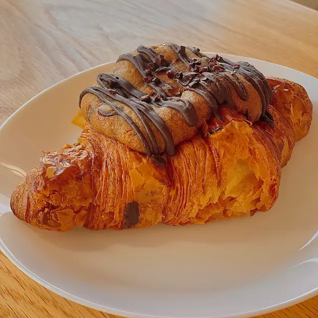 近年韓國熱賣Croffle,就是牛角包Croissant和窩夫Waffle的合體,我點的是朱古力曲奇可頌。牛角包既保留了牛角包香濃的牛油味與酥脆口感,芯層軟韌,還有朱古力漿,加上上面還有一塊朱古力曲奇,朱古力味特別香濃!即使隔了第二天才吃,牛角包依然香脆,能清晰聽到拿起牛角包的咔嚓聲,把它弄熱後再吃,裏頭濕潤的朱古力內餡充斥口中,朱古力曲奇鬆脆,口感層次豐富。雖然邪惡,但是真的很滿足!地理位置有點難找,在butterfly酒店側面,要進入街市後才看到。La Viña (中環)📍中環嘉咸街23號My Central地下3號舖…查看更多
