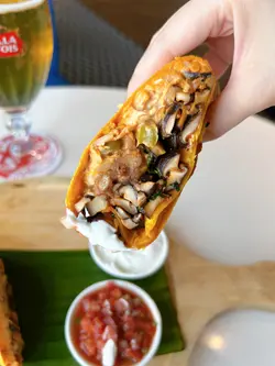 陰陰天 落雨天唔想煮飯🥹所以過咗東涌喜來登酒店食個寫意lunch~ 餐廳環境超大,有室內同室外位天氣好嘅時候喺出面曬住太陽嘆美食,好chill!雖然哩日落雨,但係坐喺落地玻璃前望住朦朧嘅海景,都一樣咁舒服🩷今次試咗佢哋嘅:▪️ 香辣羊肉玉米片 $148羊肉非常入味軟腍配埋香菜鮮茄莎莎醬,個味道好豐富,羊肉一啲都唔羶,同nacho好夾!😋▪️ 大蘑菇墨西哥卷餅 $170材料超多!玉米餅包住滿滿嘅大蘑菇,仲有仙人掌、酸忌廉、牛油果醬等等,口感同層次都爆燈,素食者都會愛上~ 🌮.就算唔好天,都可以搵到方法獎勵自己嘅胃仔💕 呢度絕對係假日放空、情侶約會嘅好地方!…查看更多