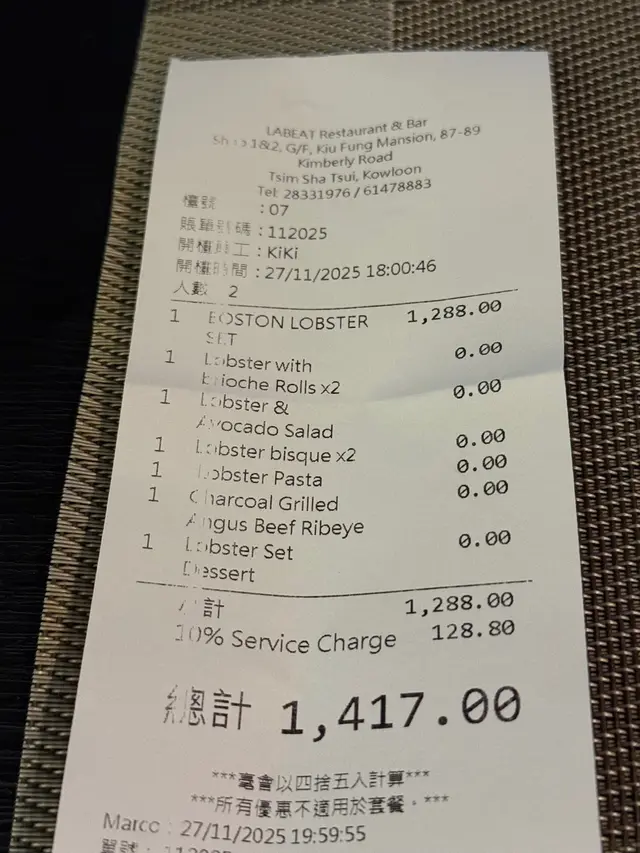 LAB EAT Restaurant & Bar (金巴利道) (尖沙咀) 網上訂座享低至88折優惠兼賺Rice Dollars 網址: https://s.openrice.com/QrbS0azE300 地址: 香港尖沙咀金巴利道87-89號僑豐大廈地下1-2號舖 電話: +852 28331976