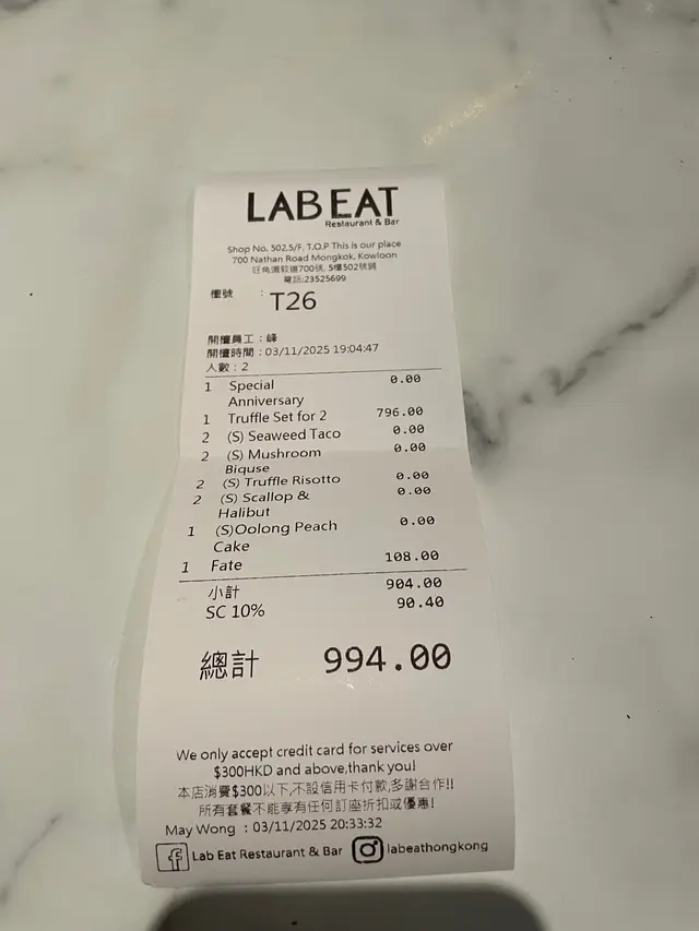 LAB EAT Restaurant & Bar (T.O.P This is Our Place) (旺角) 網上訂座享低至75折優惠兼賺Rice Dollars 網址: https://s.openrice.com/QrbS0z5q400 地址: 香港旺角彌敦道700號T.O.P This is Our Place 5樓502號舖 電話: +852 23525699