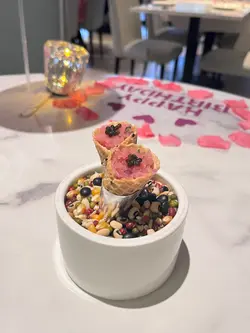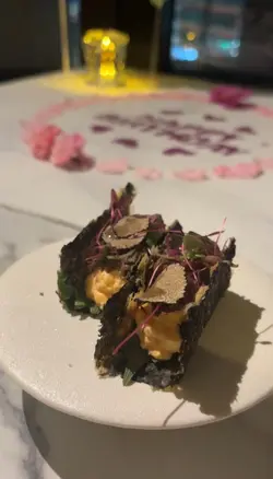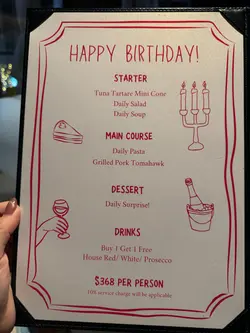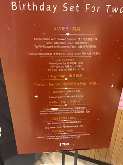 準備慶生既人注意🔊中意打卡影靚相,大推黎呢間慶祝生日‼️餐廳準備哂裝飾比你打卡,甜品仲會有大大枝仙女棒🪄🧚🏻插喺甜品🎂度比你瘋狂影相🪄如果唔食套餐,OpenRice訂座都有主餐牌88折💞一入座就見到餐廳精心佈置既裝飾😍有個轉轉懸浮心形玫瑰,粉紅色花花生日花牌同鋪哂花瓣喺枱面,浪漫同打卡指數199🍄松露二人套餐 $398位/2位起前菜:🌮松露燒牛肉紫菜塔可餅海苔🍙包住由沙律蛋🍳墊底嘅松露燒牛肉🔥🐮,味道好搭配,而且口感好豐富,海苔夠香脆,係一個好味開胃小食湯品:🍲野生蘑菇黑松露濃湯好濃厚蘑菇味,飲落好足料,口感好有顆粒感,蘑菇同黑松露味都好出主食:🍄松露蘑菇意大利飯好有誠意,面頭有刨好一片片既松露,松露味香濃🍄🟫醬汁濃稠度亦較得幾好,意大利飯食落軟硬適中,非常唔錯主菜:🐟香煎帶子比目魚配黑松露比目魚大件之餘🐟,亦煎到外脆內嫩,咬落有油香🤤帶子新鮮✨微炙後更加香,個底仲有薯蓉,成個配搭係幾好嘅選擇🥩炭燒安格斯牛肉眼扒 +$198因為想試唔同款主菜,其中1位加$198食牛扒,個人覺得絕對要加錢食牛扒😍要左5成熟岩岩好,肉眼扒好粉嫩,見到都知好juicy💦 食落有牛味,表面煎得有焦香甜品:🍰開心果檸檬蛋糕慶生既主角甜品,蛋糕口感軟滑,好重開心果味,同檸檬🍋蛋糕亦好夾,開心果控必試啊🦖重點係個大大枝既仙女棒,超級打卡overall:當日見到同場好多人都係慶生🎂成個裝修同氣氛好溫馨浪漫,仲有outdoor位可以坐,好岩同朋友、情侶黎慶祝,食物有質素,價錢合理🉑🉑推薦…查看更多