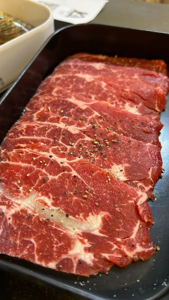 韓式燒肉餐廳,以「無煙韓燒」吸引一眾燒肉迷。牛魔王必選牛肉拼盤,7款牛部位包括牛舌、牛板腱、西冷、牛肩肉等,依次放在拼盤上。
